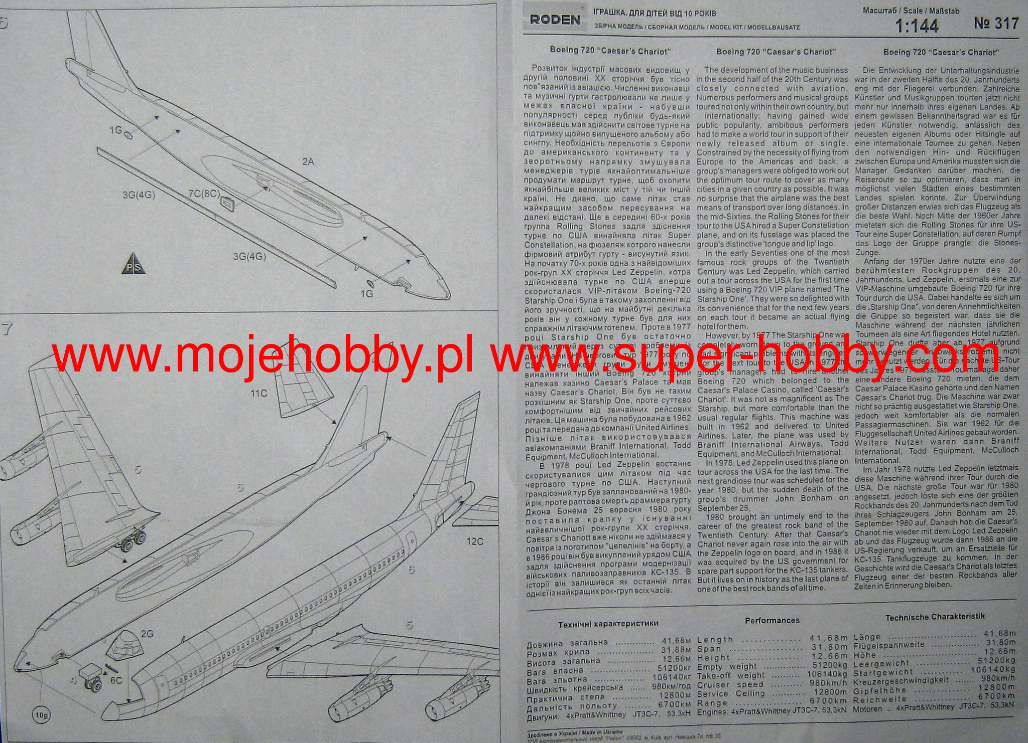СБОРНАЯ МОДЕЛЬ BOEING 720 "CAESAR'S CHARIOT" MUSIC SERIES