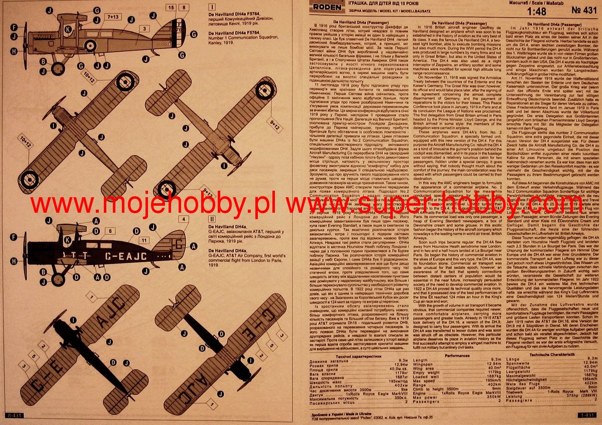 СБОРНАЯ МОДЕЛЬ DE HAVILLAND DH4A (PASSENGER)