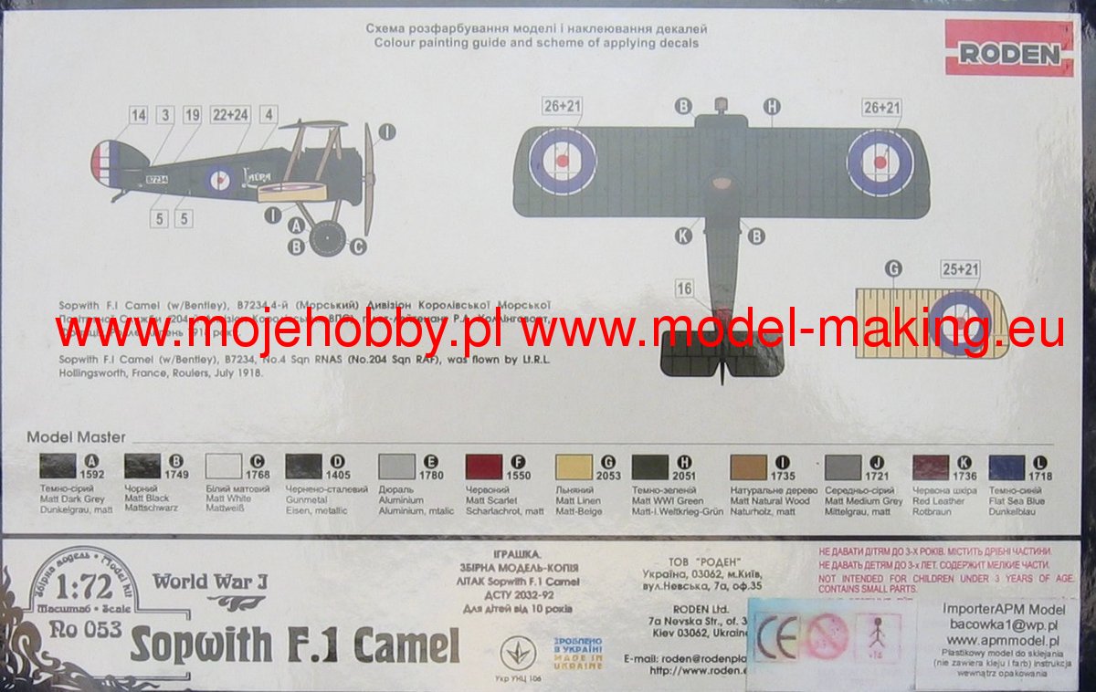 British fighter plane with a wooden structure, a Sopwith Camel biplane from the First World War. The camel owes its nickname to the "hump" in front of the pilot's cabin, which housed machine guns. The Camel was the successor to the successful Sopwith Pup fighter. The first flight of the prototype took place in December 1916, and deliveries to the front units began in the summer of 1917. The first serial batches required great abilities from the pilots and showed asymmetry of flight characteristics, unheard of in other Allied machines. With time, however, the Camel gained a reputation among pilots of a very maneuverable, solid machine with a decent rate of climb. He was a worthy rival to the German machines from the Albatros or Fokker factories. During the course of the war, several versions of the Camel were created. The most important of them are: F.1 - fighter, F.1.3 - night fighter, TF1 - trench fighter, 2F.1 - deck fighter. Thanks to the commencement of serial production by eight different aviation factories, it was possible to produce as many as 5,490 machines during the war. Technical data: Top speed: 185 km / h; climb speed 5.5 m / s, maximum ceiling 6400 m, armament: two 7.7mm Vickers machine guns, firing through a propeller. In the assault version, 7.7mm Lewis machine guns.