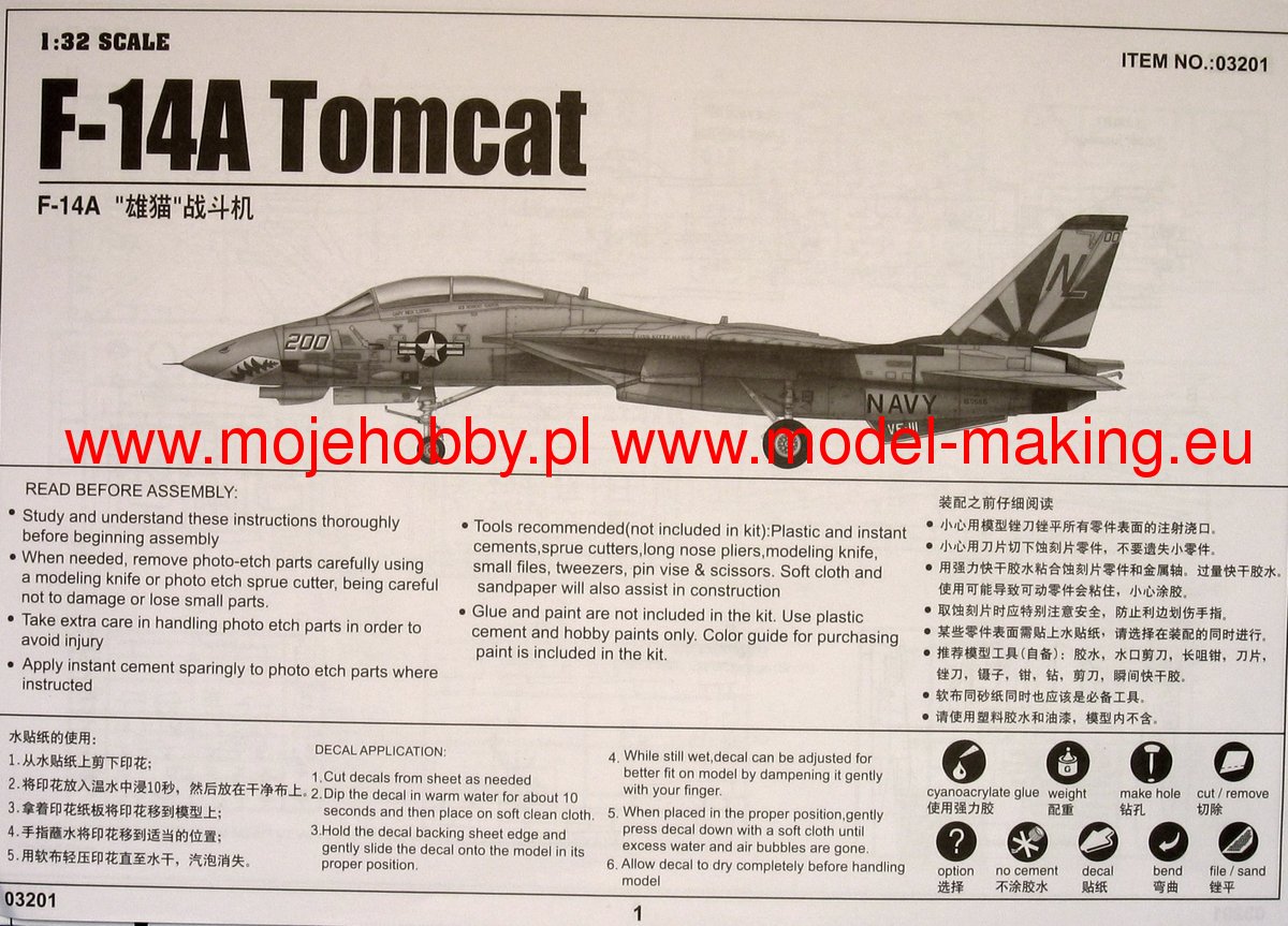 Купить ИСТРЕБИТЕЛЬ F-14A "ТОМКЭТ" F-14A "TOMCAT" FIGHTER (1/32)