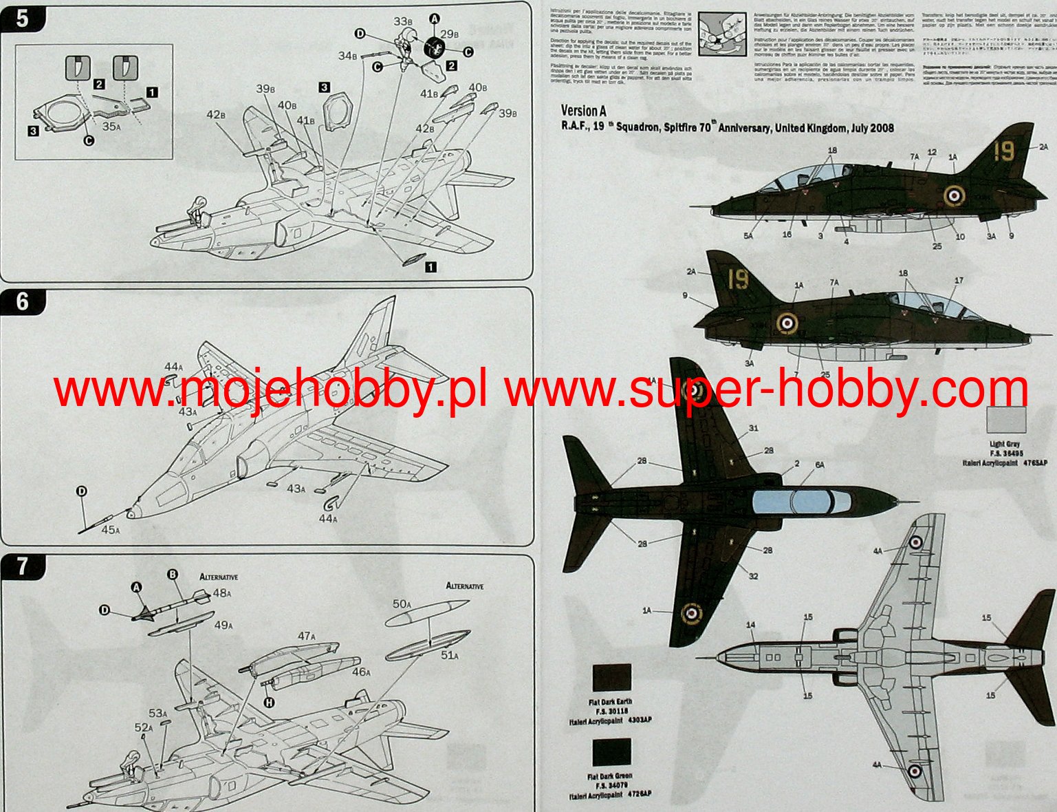 SUPER DECALS SHEETS FOR 5 VERSIONS - COLOR INSTRUCTIONS SHEET