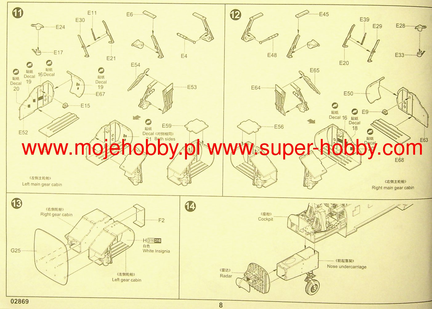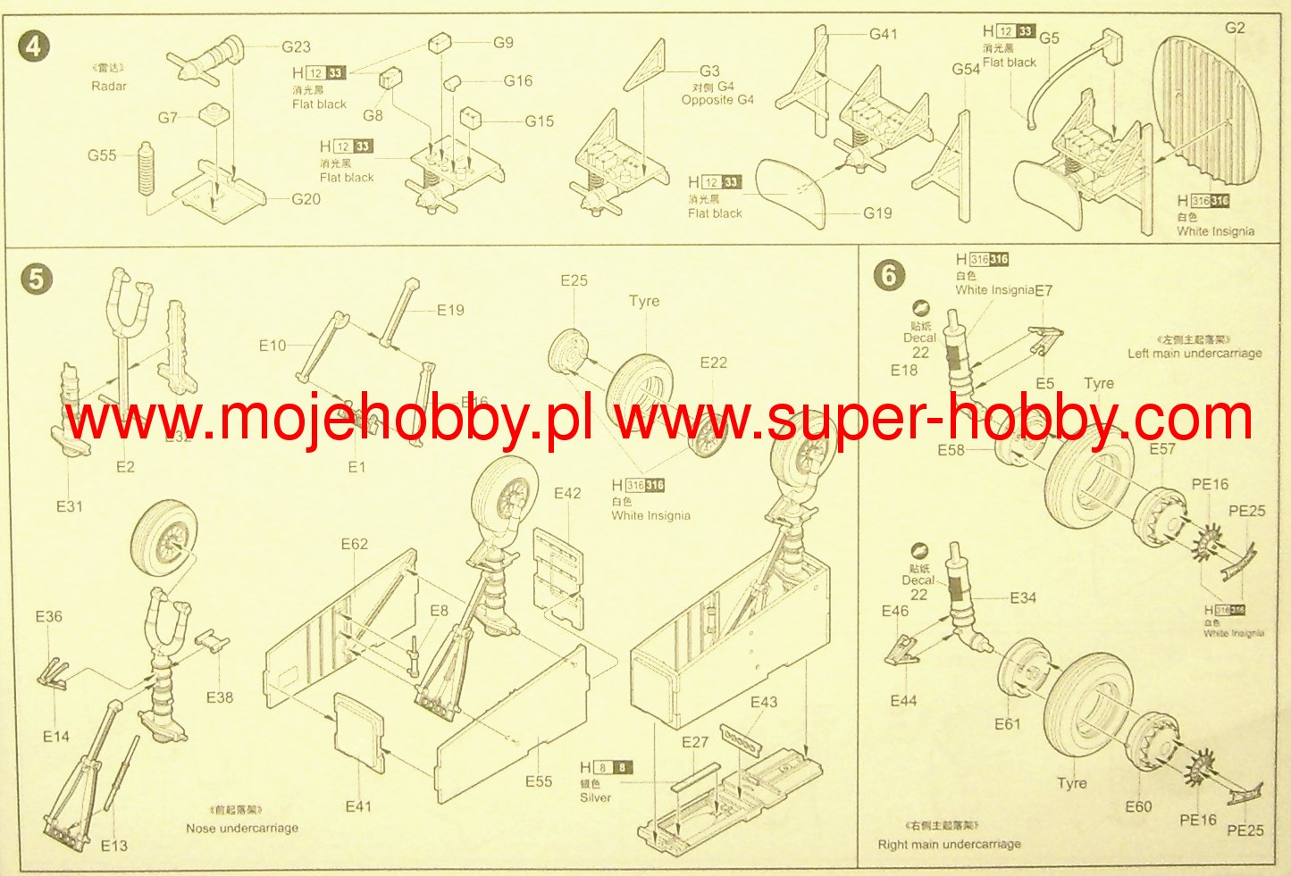 Дополнительная информация Douglas A-3 “Skywarrior” был стратегическим ядерным бомбардировщиком созданным для ВМФ США. Самолет имел складывающиеся крылья для хранения на палубе, управляемую радаром турель и экипаж из трех человек. Проект основан в 1943 году, 28 октября 1952 года прототип XA3D-1 поднялся в воздух. Самолет поступил на вооружение в 1956 году. Производство окончено в 1961, всего построено 282 экземпляра. Длина модели: 492,4 мм. размах крыльев: 460,5 мм. Количество деталей: более 400. Tire Black Metal Black White insignia Light Gull Burnt Iron Red Falt Black