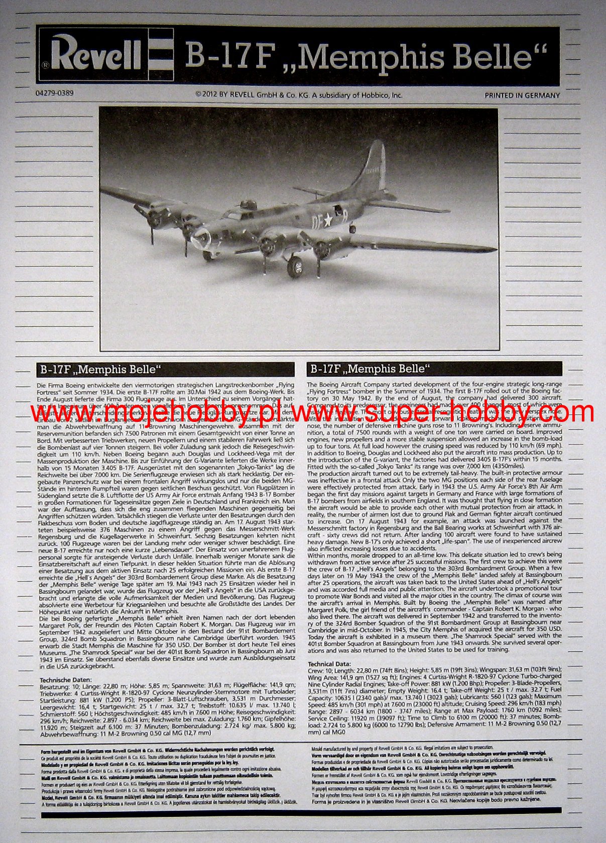 Сборная модель американского тяжелого бомбардировщика Боинг B-17F в масштабе 1:72. Детали изготовлены из пластика и требуют окраски. Модель детально и достоверно проработана: - Кабина с панелью приборов, креслами, штурвалами, переборками, проработанное место радиста с радиооборудованием. - Поворачивающиеся надфюзеляжная и подфюзеляжные турели, носовые и хвостовые пулемёты. - Бомбовый отсек с бомбами, створки бомболюка на выбор открыты или закрыты. - Закрылки выполнены отдельными деталями, подвижные элероны, рули высоты и поворота. - Двигатели, вращающиеся 3-х лопастные пропеллеры, 2 варианта радиаторных решёток на выбор, выхлопная система выполнена отдельными деталями. - Проработанное шасси. - Детали из прозрачного пластика для остекления кабины, иллюминаторов, носовой части, бортовых огней, куполов турелей. - Декаль с техничкой для 2 вариантов ВВС США "Memphis Belle" и "The Shamrock Special". Уровень сложности 5 (из 5), рекомендуемый возраст 14+ Внимание! Клей и краски в комплект не входят.