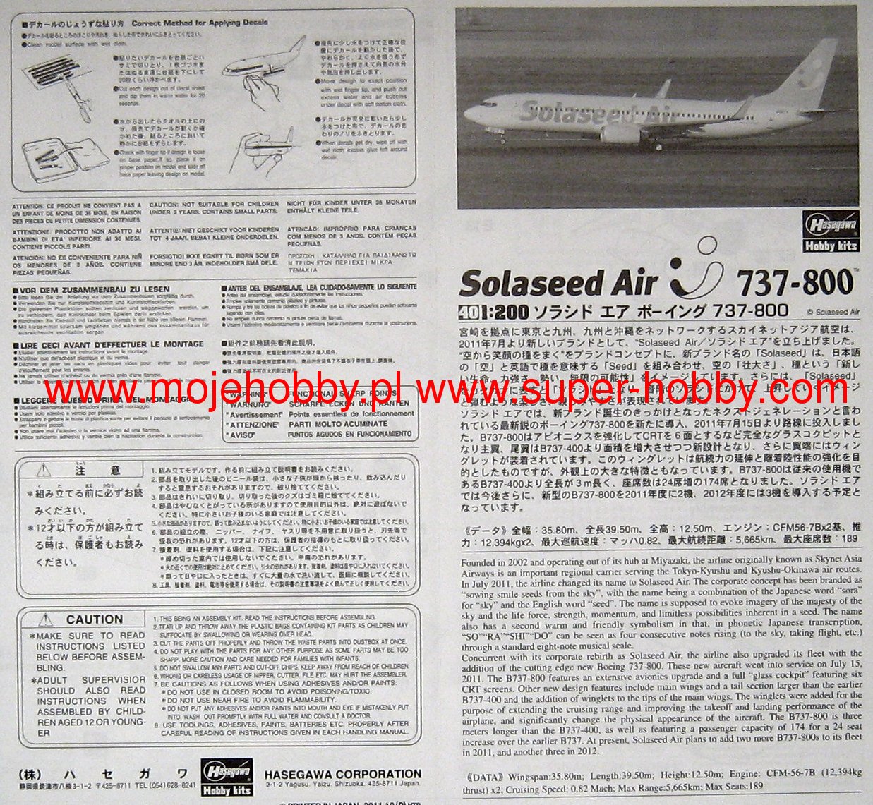 BOEING 737-800 SOLASEED AIR HASEGAWA (1/200) продается в 1 магазинах. Выберите подходящий Вам интернет-магазин и перейдите по ссылке «В магазин».