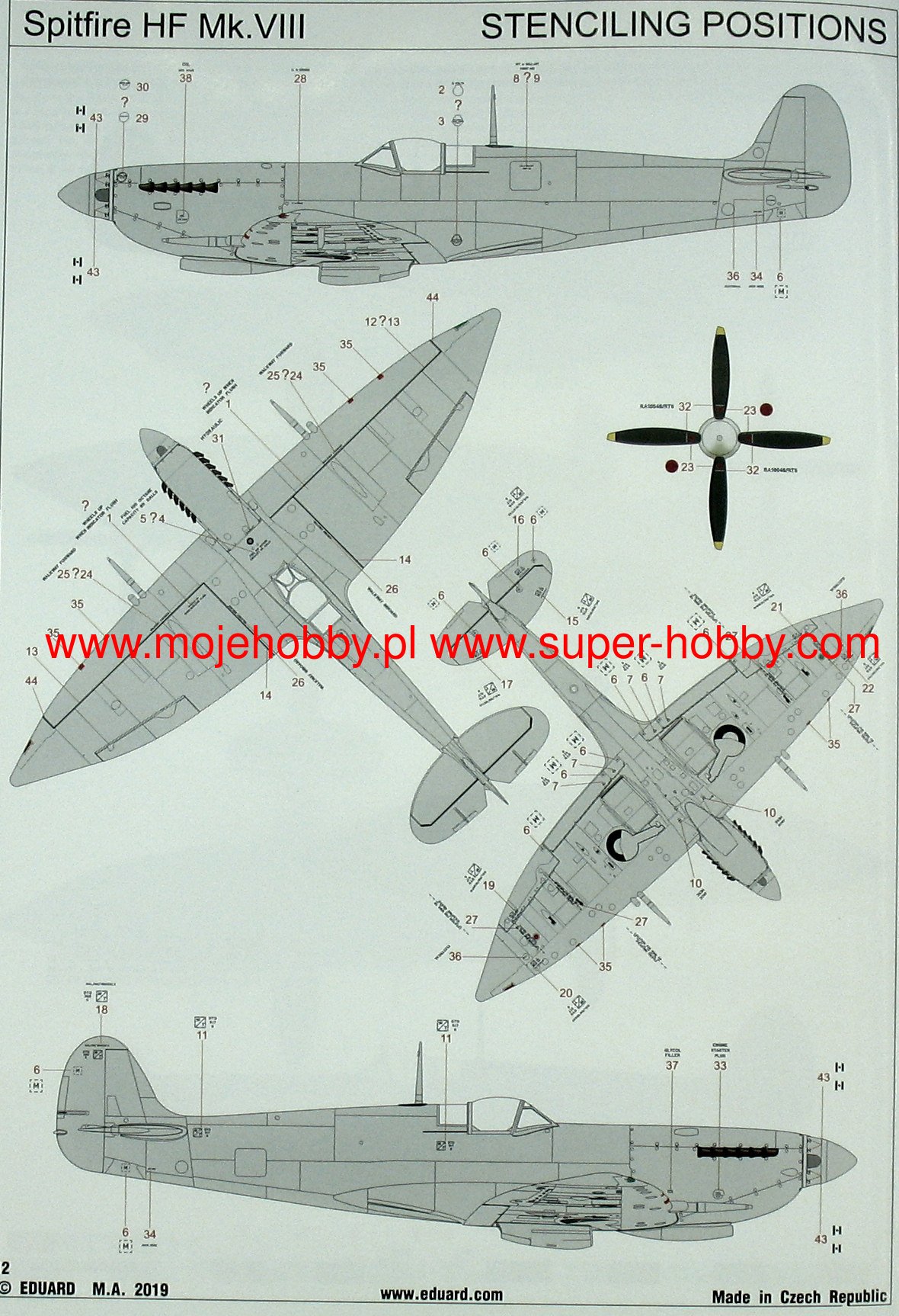 Supermarine Spitfire is probably the most famous British fighter from the Second World War. It was an all-metal machine with a low wing configuration, characteristic elliptical wings, a classic tail and a retractable landing gear. The prototype flight took place on March 5, 1936. The Spitfire proved to be the RAF's staple of the war, which continued to do well after the war, remaining in production for 10 years. The history of the Spitfire began on the drawing desk of RJ Mitchell, Supermarine's lead designer. The first machines went to RAF units in 1938, but when the Battle of Britain began in the summer of 1940, there were already 19 squadrons of modern fighters at the airfields - together with the slightly older Hurricanes of the Islands, 600 aircraft were defending. With the expansion of hostilities, the Spitfire served wherever the RAF operated in the Far East, North Africa and Italy, during the Normandy landings and fighting in France, and finally during the operation in Germany in 1945. For many Britons, he became a symbol of victory in World War II. This wonderful machine has at least a dozen production versions. The most important of them are, among others the first mass-produced Spitfire Mk.I powered by a 1030hp Rolls-Royce Merlin II engine. It was above all this machine that made such an excellent contribution to the Battle of Britain. Many versions of this model have been developed, including PR Mk IA (reconnaissance version) or PR.IG (armed reconnaissance version). Another interesting version was the Spitfire Mk.V with a Rolls-Royce Merlin 45 engine with 1440HP. Later, Merlin 50 engines were also assembled. Serial production of this version started in 1941 and was the RAF's response to the appearance of the Messerschmitt Bf-109F. Another very successful version is the Spitfire Mk.IX, powered by a Merlin 61 engine with a 4-blade propeller. It was created as an opponent to the Focke-Wulf Fw-190 and was put into production at the end of 1941. This version was modified many times and, for example, in 1944 it got a new gyro sight, an enlarged rudder or a different wing system. Another major version is the Spitfire Mk.XIV with a Rolls-Royce Griffon 61 engine and a five-bladed propeller. Serial production started in October 1943. One of the last series produced was the Mk.21 version. This version had a Griffon 61 engine, a strongly reinforced structure and sheathing, the wings were extended, increasing their flying surface. Mass production started in March 1945. Technical data (Mk.XIV version): length: 9.14m, wingspan: 11.23m, height: 3.05m, maximum speed: 717km / h, rate of climb: 18.5m / s, practical ceiling: 13,200m, range maximum: 1815 km, armament: fixed - 4 7.7mm machine guns and 2 20mm Hispano Mk II cannons, suspended - up to 225 kg of bombs. 3_edu84132_instruction_sheet.pdf