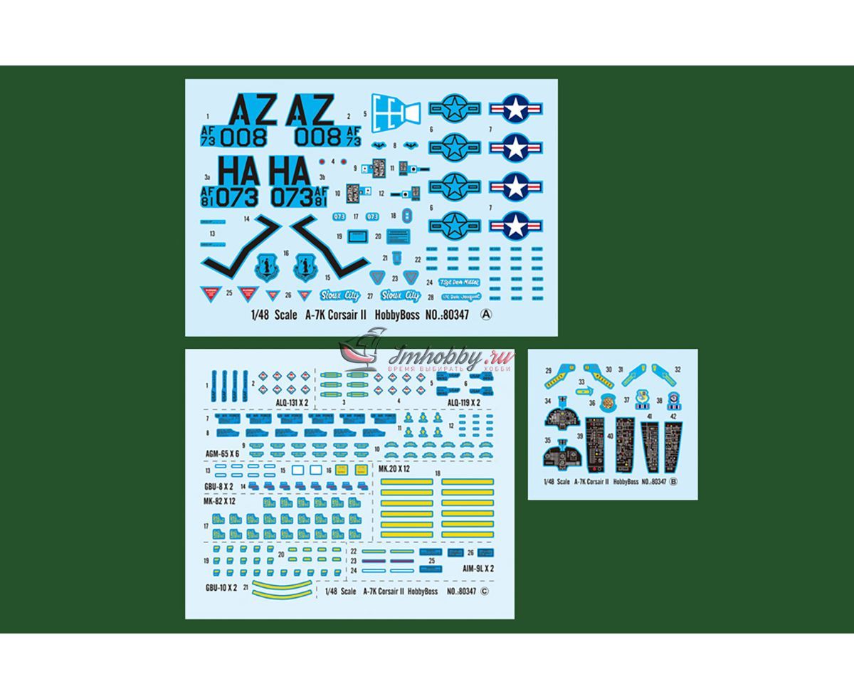 Сборная модель самолета A-7K Corsair II в масштабе 1:48 от Hobby Boss. Характеристики модели: Длина - 315,5 ммРазмах крыльев - 246,4 ммКол-во деталей - 291 штМасштаб - 1:48Декали в комплекте.Шины - пластик. Внимание! Краски и клей в комплект не входят.