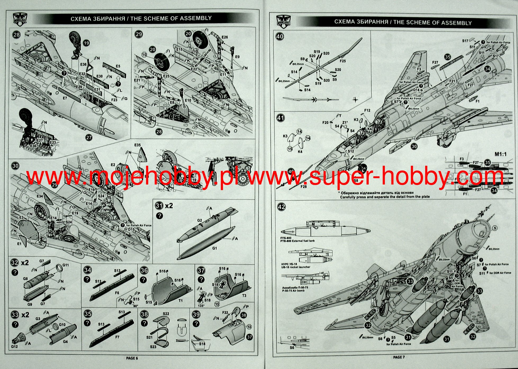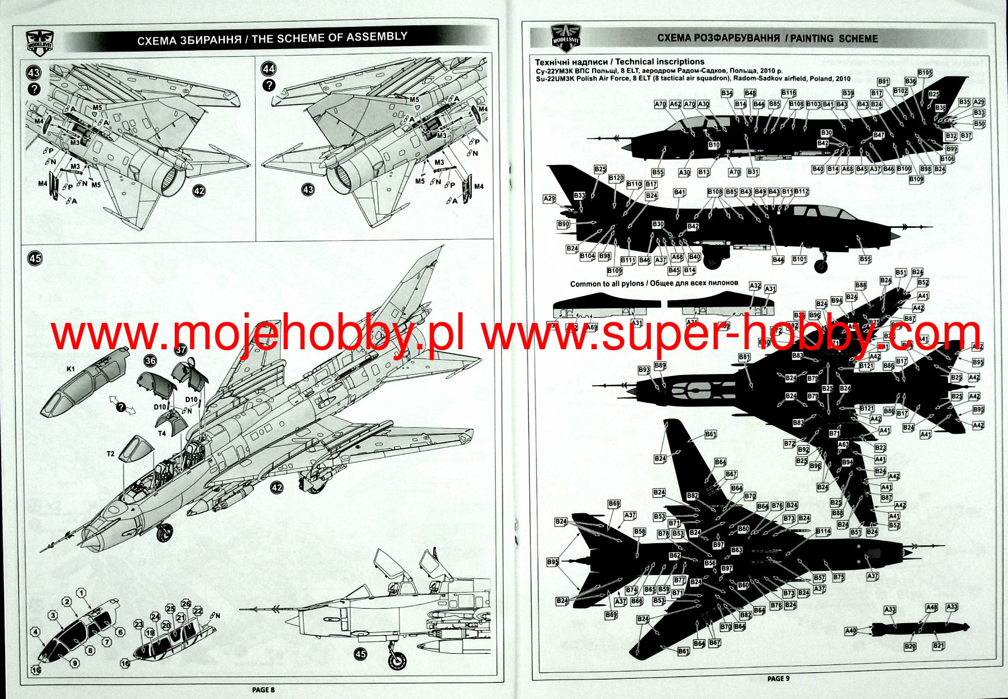 The Sukhoi Su-22 is a Soviet single-engine attack bomber with variable wing geometry, a development of the Su-17 machine, mainly for export. The first export version is the Su-22K, with the Tumański R-29 engine. A two-seater version was quickly created, designated as Su-22M3U. The Su-22M4 model, which was first sold in 1979, was the most sold. It had a significantly modernized avionics with laser devices for distance measurement and targeting (Klon-54 device). It was the standard attack aircraft of the 1980s of the Warsaw Pact countries. Technical data: length: 19.02m, wingspan (with folded wings): 10.02m, height: 5.1m, maximum speed: 1.7Ma, rate of climb: 230m / s, maximum range: 2250km, armament: fixed - 2 NR-30 30mm guns, slung - up to 4070 kg of cargo