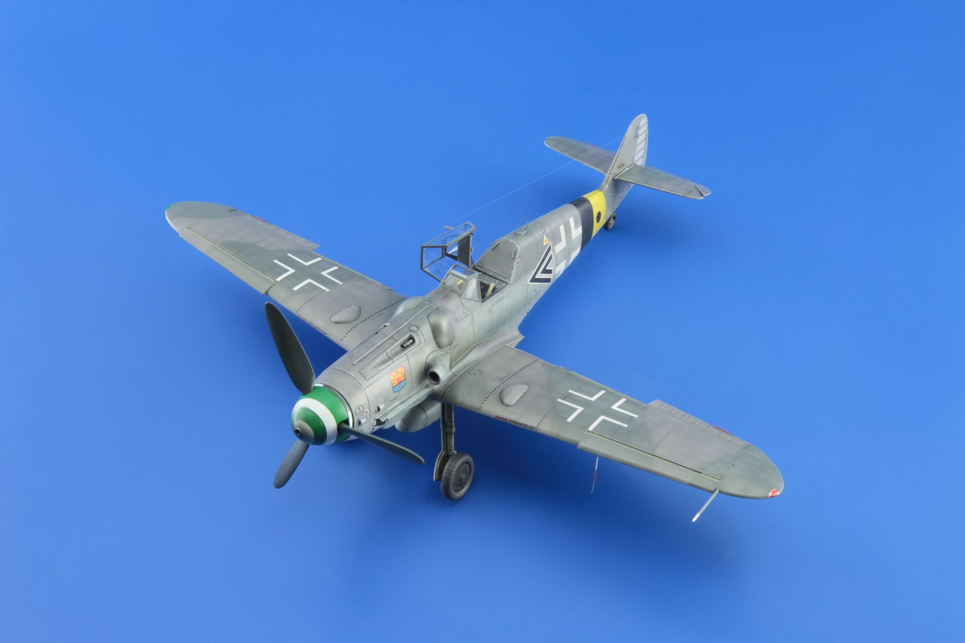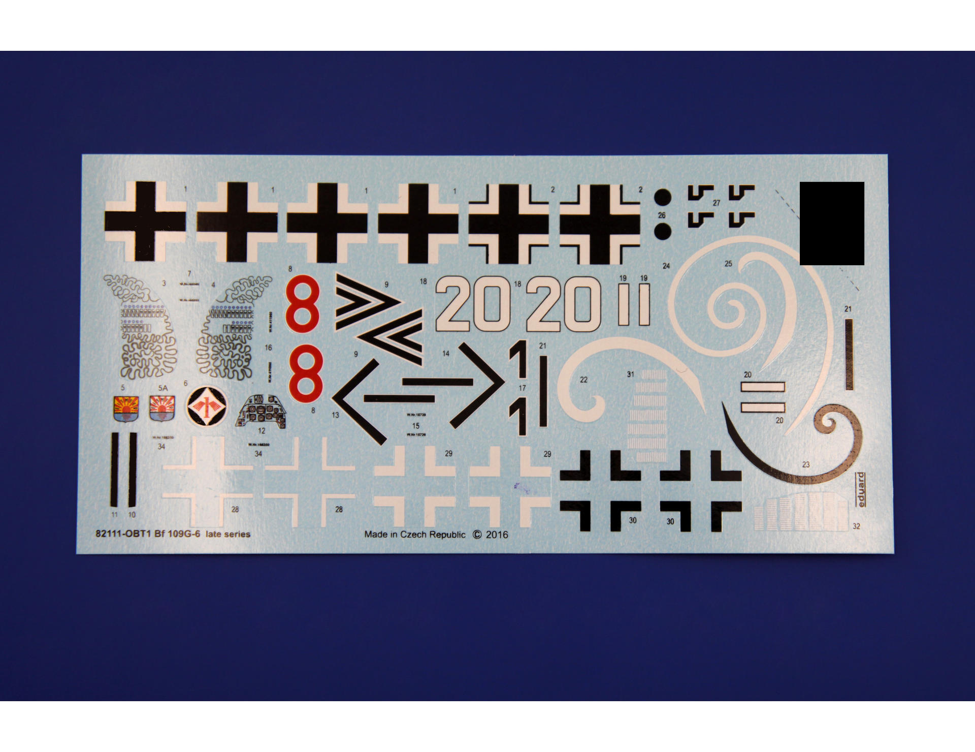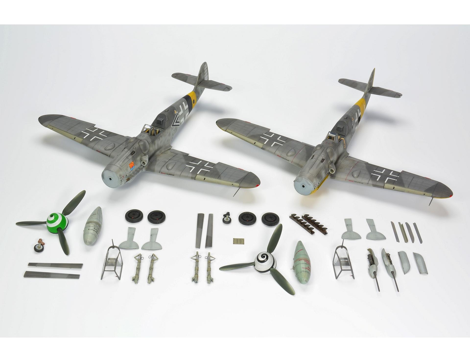 The Messerschmitt Bf-109 is a German metal-structure single-engine fighter in a low wing configuration with a classic tail. It turned out to be the basic and most produced Luftwaffe fighter during World War II. The flight of the prototype took place on May 29, 1935, and serial production continued in the years 1936-1945. In total, it is estimated that a total of about 35,000 Messerschmitt Bf-109 fighters of all varieties were produced, many of which ended up in the Czech and Israeli air forces after the war. The roots of the Bf-109 go back to the competition announced in 1933 by the Luftwaffe for a new fighter plane. In competition with the He-112, the Bf-109 project initially lost, but thanks to Willie Messerschmitt's intrigues, the project could continue and eventually he was the winner of the competition, becoming the Luftwaffe's primary fighter. Several main variants of the Bf-109 were developed in the course of production. The first pre-production series was the Bf-109B (Berta) with different versions of the Junkers Jumo 210 (A or Da) engine. They were tested in Spain from 1937 during the Civil War. The next version is the Bf-109C (Caesar). They had a different engine than the B version, and extensive armament consisting of two 20mm and 2 HP 7.92mm cannons. These machines also fought in the skies of Spain. The third version is the Bf-109D (Dora) with the Junkers Jumo 210 Da or Daimler-Benz DB 600 engine. It fought in the September campaign, but at the turn of 1939/1940 it was replaced by the E version. The most famous model was the Bf-109E (Emil) with a Daimler-Benz 601A or N engine. It was the first to use a three-blade, not a two-blade propeller. Bf-109E fought in the French campaign, over England, and in North Africa and on the Eastern Front. The ace who started his career on the Bf-109E was the famous Adolf Galland. The next version is the Bf-109F (Friedrich), which, according to the German pilots, was the most aerodynamically perfect. It sowed the changed shape of the fuselage, wings, cabin fairings, but no new engine was used. It was put into service at the turn of 1940/1941. As part of the development of the design, further Bf-109 specifications were developed, of which the G (Gustav) version was produced in the largest number of copies. The most important change increasing the machine's performance was the installation of a new 12-cylinder Daimler-Benz DB605A engine with 1475HP. The armament of the Bf-109G was a pair of 13mm machine guns located in the fuselage in front of the cockpit fairing, and the MG151 20mm or heavier MK108 30mm cannon. The last mass-produced version was the Bf-109K (Kurfirst), which production started in October 1944. A Daimler-Benz DB 605DB or DC unit was used as the engine. The Bf-109K was the fastest version produced during World War II, reaching up to 730 km / h. Apart from that, two versions were created - H and Z, but they were rather experimental versions and their mass production did not start. Subsequent improvements in propulsion and armament made the Messerschmitt Bf-109 one of the most dangerous fighters of World War II, and at the same time showed the great potential of the slightly angular airframe created by Willi Messerschmitt. Technical data (version Bf-109 G-6): length: 8.95 m, wingspan: 9.92 m, height: 2.6 m, maximum speed: 640 km / h, rate of climb: 17 m / s, maximum range: 850 km, maximum ceiling 12000m, armament: fixed - 2 MG131 13mm machine guns and 1 MG151 20mm cannon, suspended - 250 kg bombs, or 2 Wfr missile launchers. Gr. 21. 3_edu82111_instruction_sheet.pdf