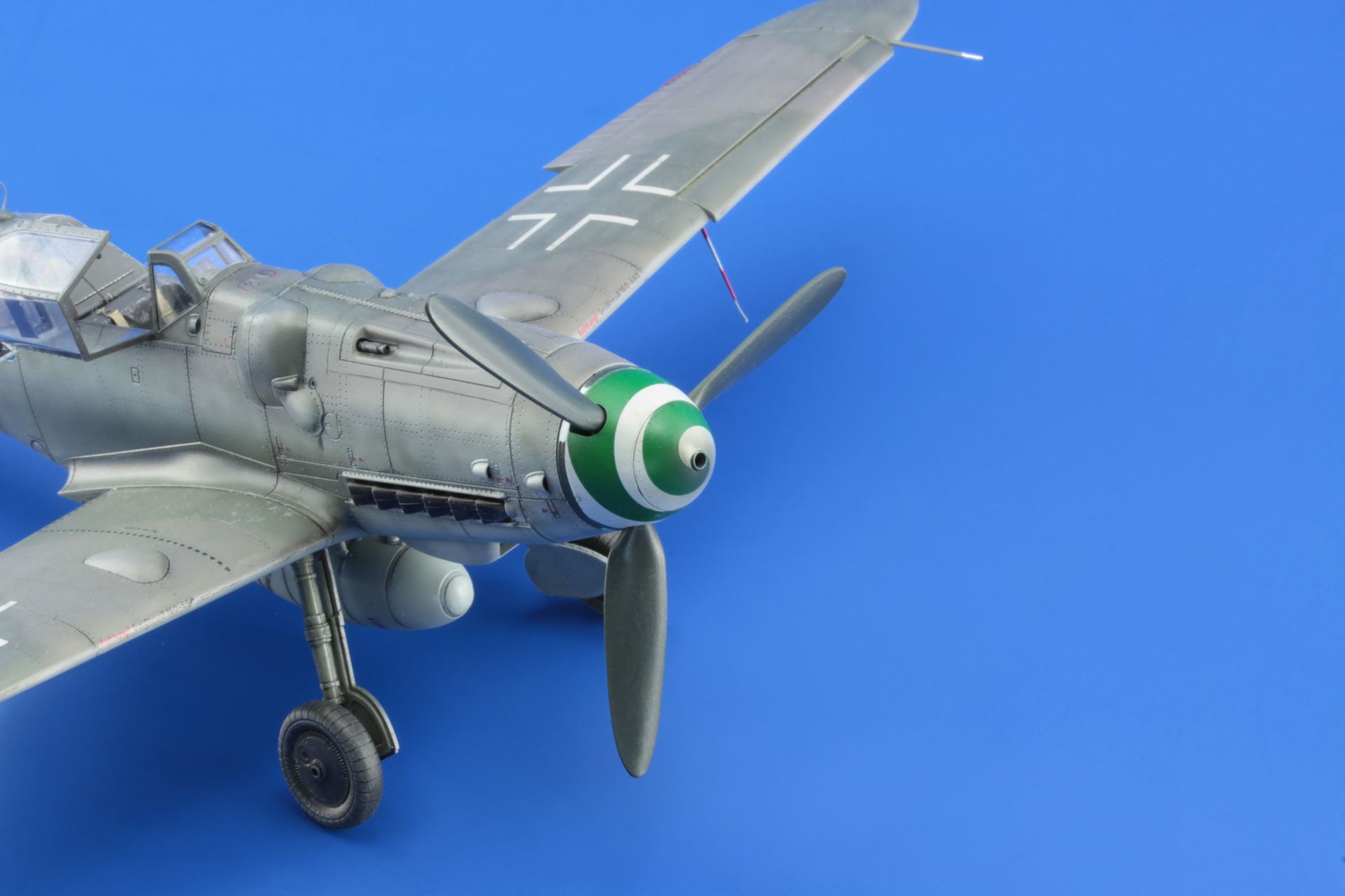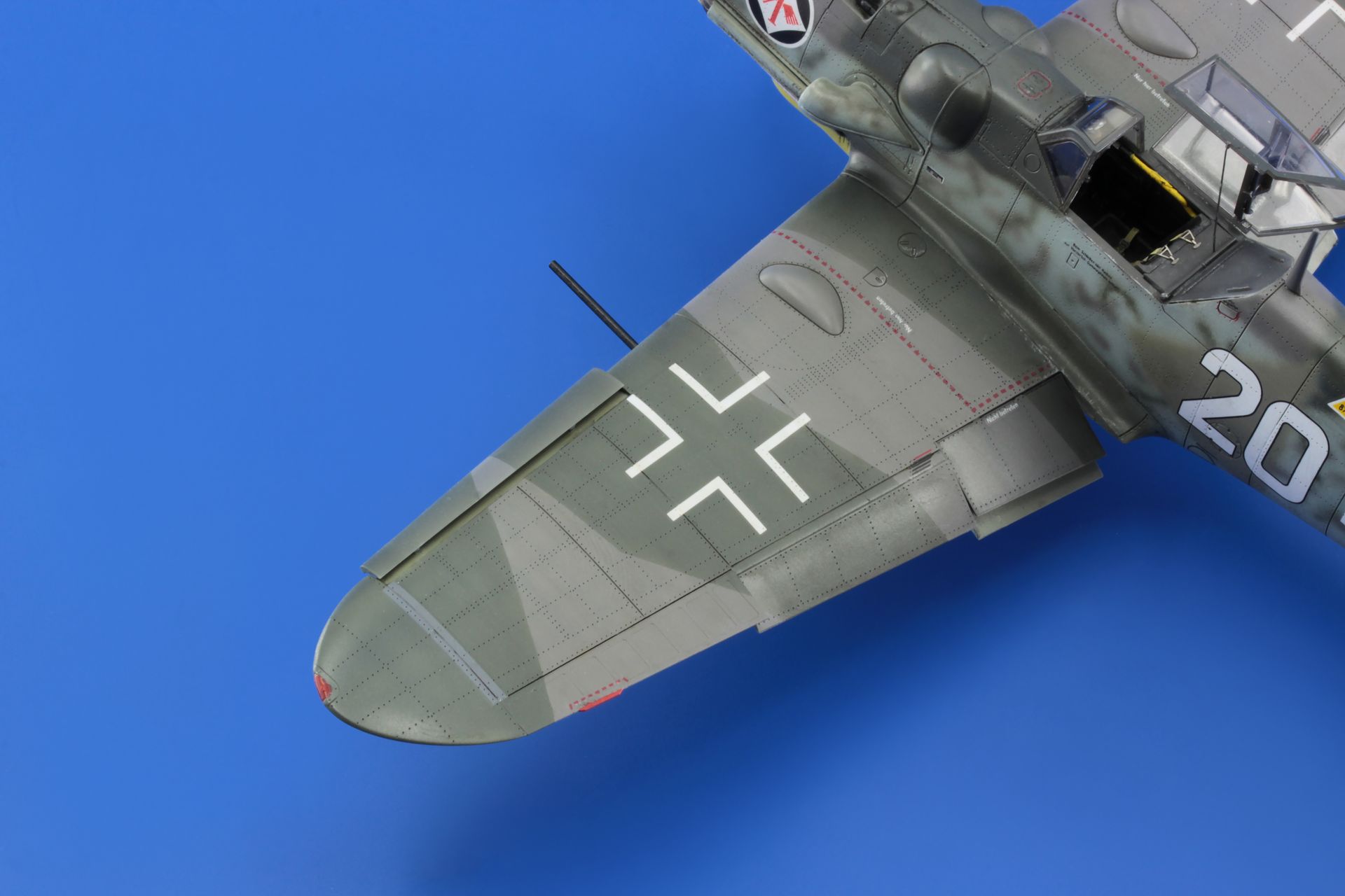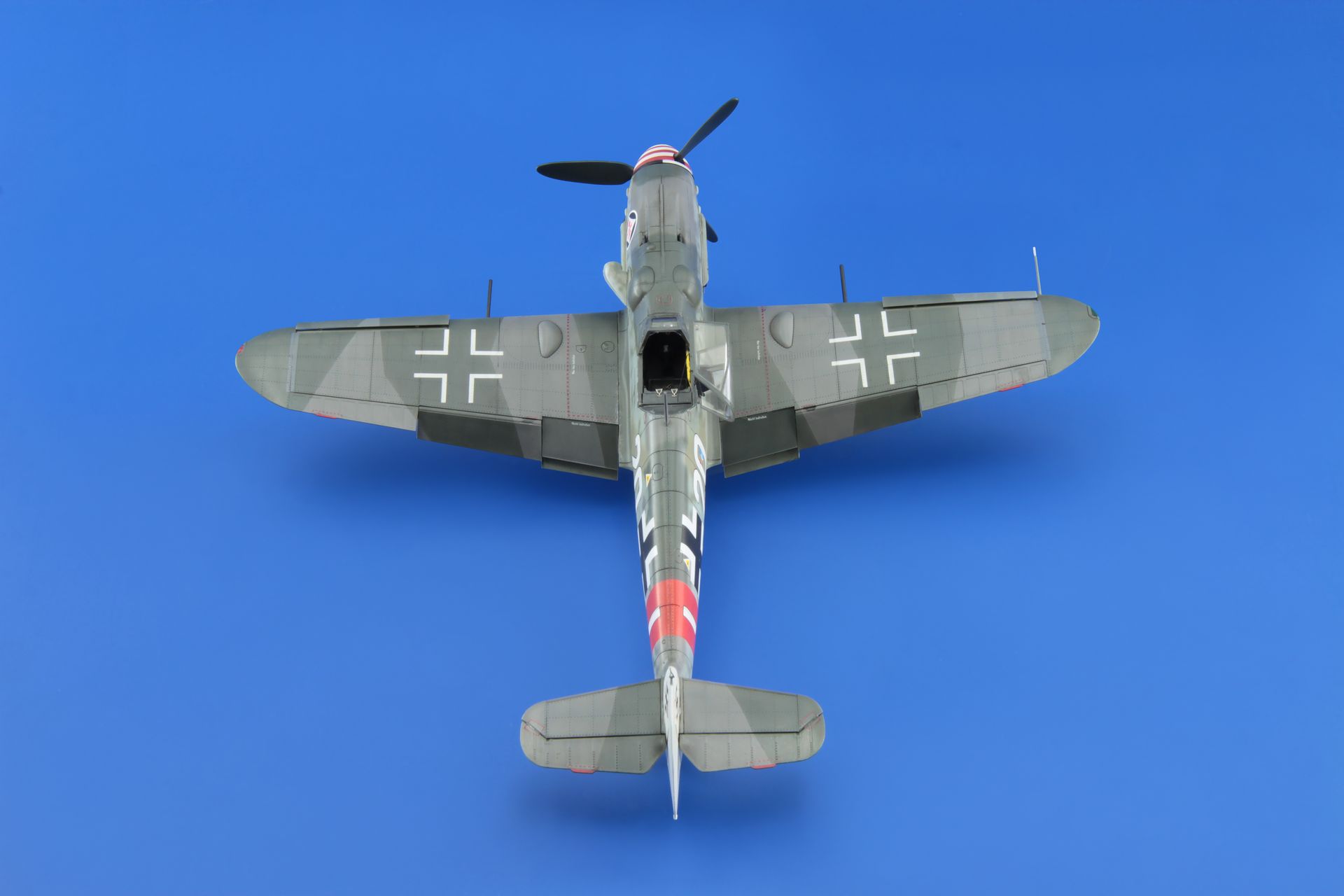 The Messerschmitt Bf-109 is a German metal-structure single-engine fighter in a low wing configuration with a classic tail. It turned out to be the basic and most produced Luftwaffe fighter during World War II. The flight of the prototype took place on May 29, 1935, and serial production continued in the years 1936-1945. In total, it is estimated that a total of about 35,000 Messerschmitt Bf-109 fighters of all varieties were produced, many of which ended up in the Czech and Israeli air forces after the war. The roots of the Bf-109 go back to the competition announced in 1933 by the Luftwaffe for a new fighter plane. In competition with the He-112, the Bf-109 project initially lost, but thanks to Willie Messerschmitt's intrigues, the project could continue and eventually he was the winner of the competition, becoming the Luftwaffe's primary fighter. Several main variants of the Bf-109 were developed in the course of production. The first pre-production series was the Bf-109B (Berta) with different versions of the Junkers Jumo 210 (A or Da) engine. They were tested in Spain from 1937 during the Civil War. The next version is the Bf-109C (Caesar). They had a different engine than the B version, and extensive armament consisting of two 20mm and 2 HP 7.92mm cannons. These machines also fought in the skies of Spain. The third version is the Bf-109D (Dora) with the Junkers Jumo 210 Da or Daimler-Benz DB 600 engine. It fought in the September campaign, but at the turn of 1939/1940 it was replaced by the E version. The most famous model was the Bf-109E (Emil) with a Daimler-Benz 601A or N engine. It was the first to use a three-blade, not a two-blade propeller. Bf-109E fought in the French campaign, over England, and in North Africa and on the Eastern Front. The ace who started his career on the Bf-109E was the famous Adolf Galland. The next version is the Bf-109F (Friedrich), which, according to the German pilots, was the most aerodynamically perfect. It sowed the changed shape of the fuselage, wings, cabin fairings, but no new engine was used. It was put into service at the turn of 1940/1941. As part of the development of the design, further Bf-109 specifications were developed, of which the G (Gustav) version was produced in the largest number of copies. The most important change increasing the machine's performance was the installation of a new 12-cylinder Daimler-Benz DB605A engine with 1475HP. The armament of the Bf-109G was a pair of 13mm machine guns located in the fuselage in front of the cockpit fairing, and the MG151 20mm or heavier MK108 30mm cannon. The last mass-produced version was the Bf-109K (Kurfirst), which production started in October 1944. A Daimler-Benz DB 605DB or DC unit was used as the engine. The Bf-109K was the fastest version produced during World War II, reaching up to 730 km / h. Apart from that, two versions were created - H and Z, but they were rather experimental versions and their mass production did not start. Subsequent improvements in propulsion and armament made the Messerschmitt Bf-109 one of the most dangerous fighters of World War II, and at the same time showed the great potential of the slightly angular airframe created by Willi Messerschmitt. Technical data (version Bf-109 G-6): length: 8.95 m, wingspan: 9.92 m, height: 2.6 m, maximum speed: 640 km / h, rate of climb: 17 m / s, maximum range: 850 km, maximum ceiling 12000m, armament: fixed - 2 MG131 13mm machine guns and 1 MG151 20mm cannon, suspended - 250 kg bombs, or 2 Wfr missile launchers. Gr. 21. 3_edu82111_instruction_sheet.pdf