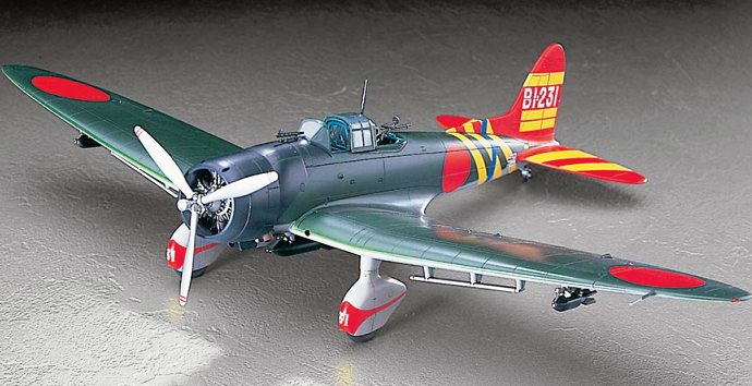 Описание Aichi D3A1 Type 99 Carrier Dive Bomber (Model 11), известный как "Val" у Союзников, японский палубный пикирующий бомбардировщик, использовавшийся Императорским флотом Японии в начале Второй мировой войны. Основные характеристики: - Тип: палубный пикирующий бомбардировщик. - Первый полёт: январь 1938 года. - Эксплуатация: 19401945. - Экипаж: 2 человека (пилот, стрелок/радист). - Двигатель: один Mitsubishi Kinsei 44, 1070 л.с. - Скорость: макс. ~389 км/ч, крейсерская ~296 км/ч. - Дальность: около 1470 км. - Вооружение: - Оборонительное: 2 × 7,7-мм пулемёта Type 97 (спереди), 1 × 7,7-мм пулемёт Type 92 (в задней кабине). - Боевая нагрузка: одна 250-кг бомба под фюзеляжем, две 60-кг бомбы под крыльями. - Размеры: размах крыла 14,37 м, длина 10,2 м. Особенности: - D3A1 (Model 11) основная ранняя версия, отличалась высокой маневренностью и точностью пикирования (угол до 80°). - Прочная конструкция и фиксированное шасси с обтекателями. - Использовался с авианосцев, таких как "Акаги" и "Кага". - Эффективен против кораблей и наземных целей благодаря точному бомбометанию. История и применение: - Прославился в атаке на Перл-Харбор (7 декабря 1941), где D3A1 уничтожили множество целей. - Участвовал в операциях в Тихом океане, включая сражения за Мидуэй и Коралловое море. - К 19421943 годах стал устаревать из-за слабой бронезащиты и низкой скорости, становясь уязвимым для истребителей Союзников. - В конце войны использовался в миссиях камикадзе.