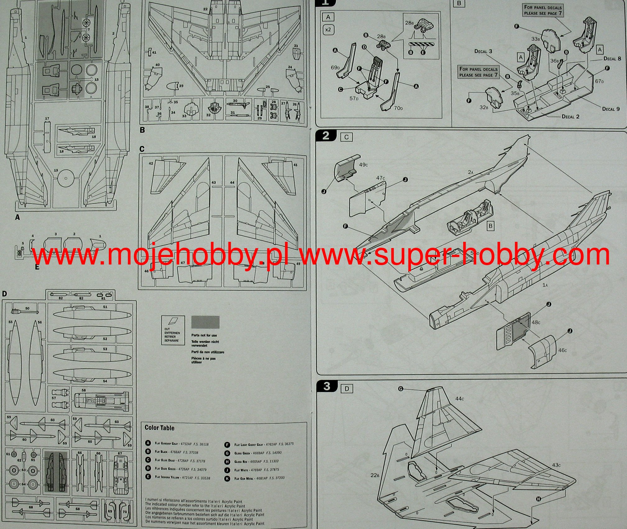 2 SUPER DECALS SHEETS FOR 4 VERSIONS - COLOR INSTRUCTION SHEET