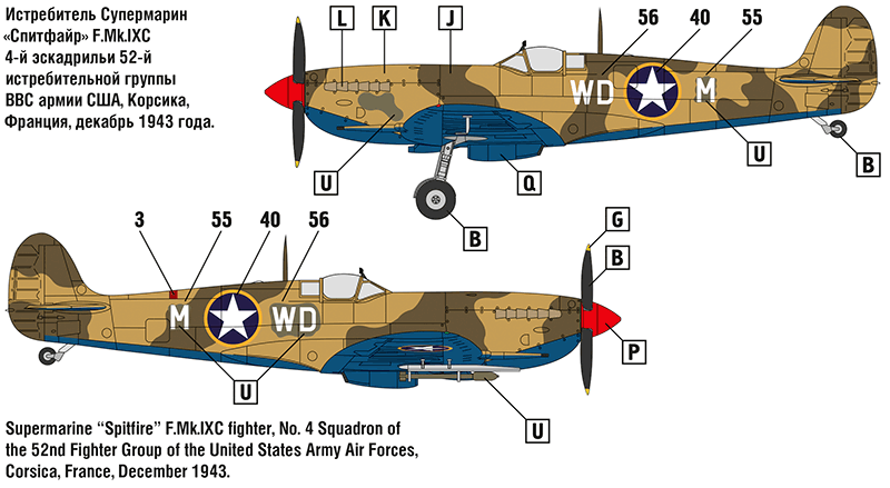 ARK-MODELS 1/48 БРИТАНСКИЙ ИСТРЕБИТЕЛЬ СУПЕРМАРИН "СПИТФАЙР" MK.IX (ДВЕ МОДЕЛИ В КОРОБКЕ)