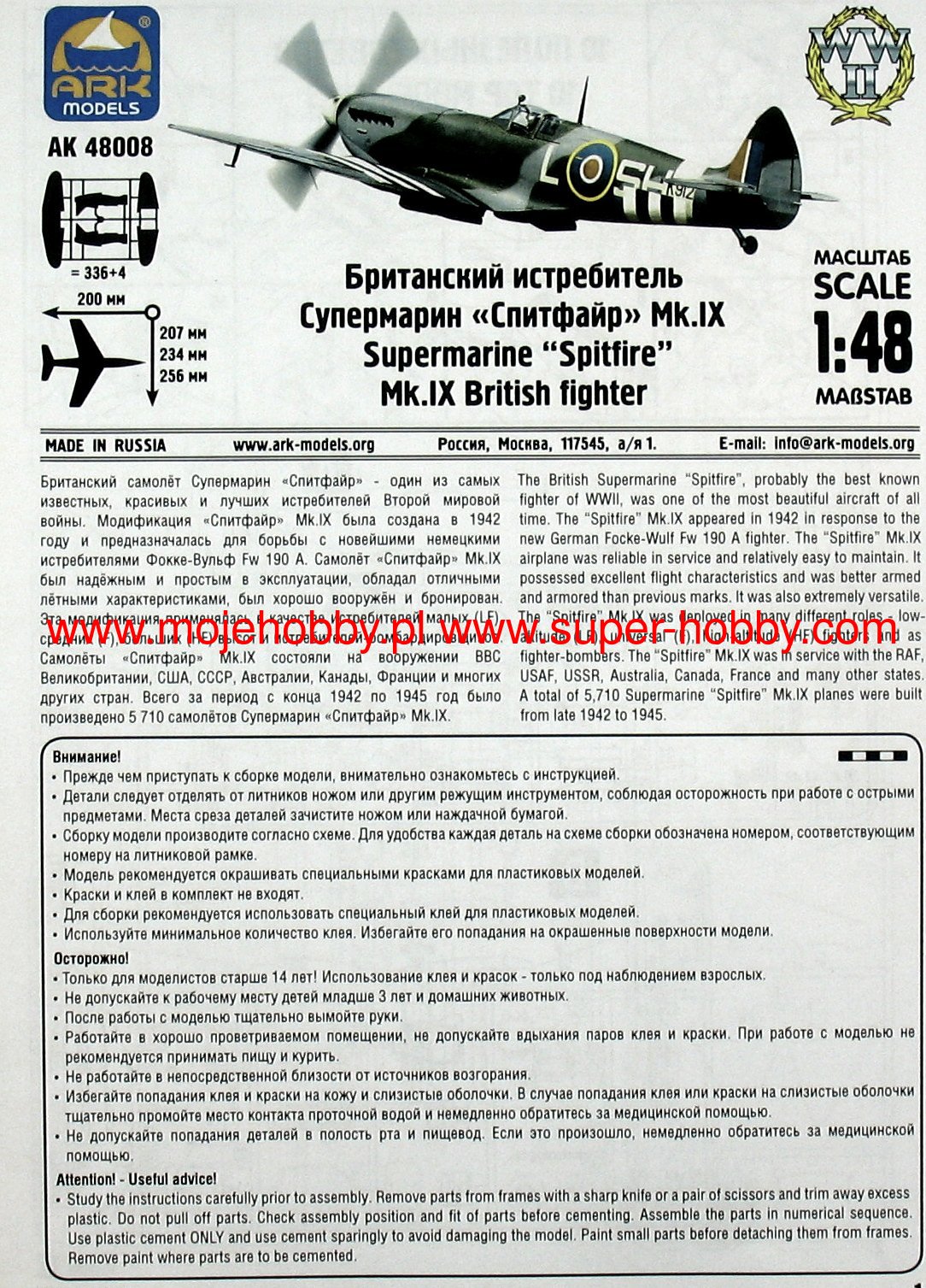 ARK-MODELS 1/48 БРИТАНСКИЙ ИСТРЕБИТЕЛЬ СУПЕРМАРИН "СПИТФАЙР" MK.IX (ДВЕ МОДЕЛИ В КОРОБКЕ) ark-models 1/48