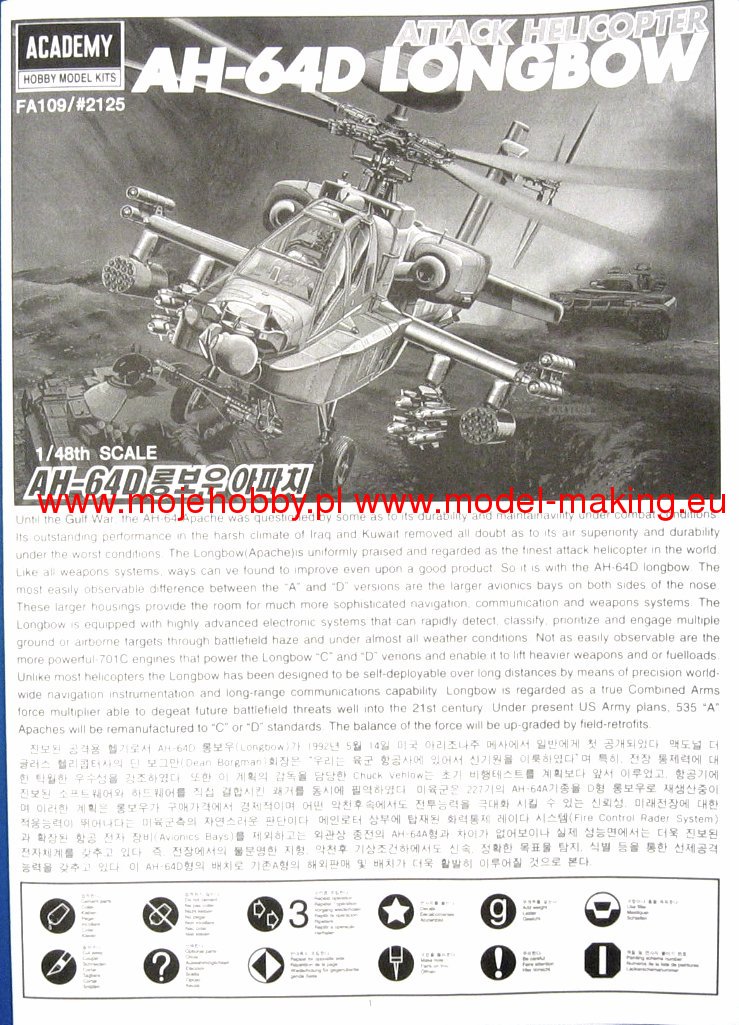 Купить AH-64D LONGBOW ATTACK HELICOPTER (AH-64D «ЛОНГБОУ» ОСНОВНОЙ УДАРНЫЙ ВЕРТОЛЁТ АРМИИ США) (1/48)
