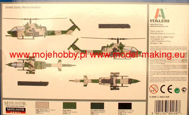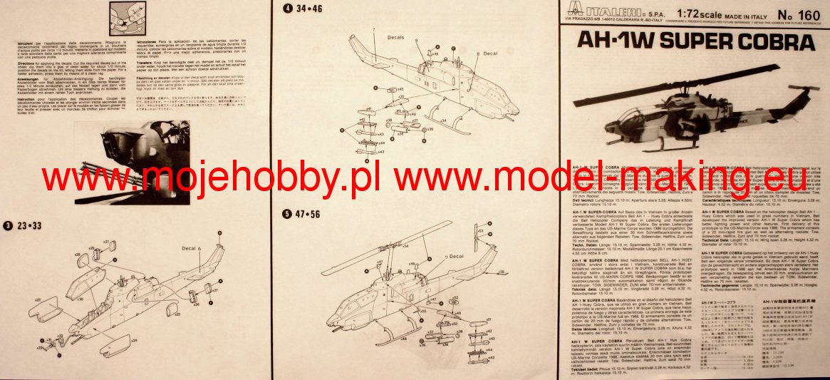 Based on the helicopter design Bell AH 1 Huey Cobra which was used in great numbers in Vietnam, Bell developed the improved version AH-1 W Super Cobra which has better fighting power and other features. First delivery of this prototype to the US-Marine-Corps was 1986. The armament consists of a 20 mm-rapid fire gun as well as alternating missile: Tow, Sidewinder, Hellfire, Zuni and 70 mm rocket.