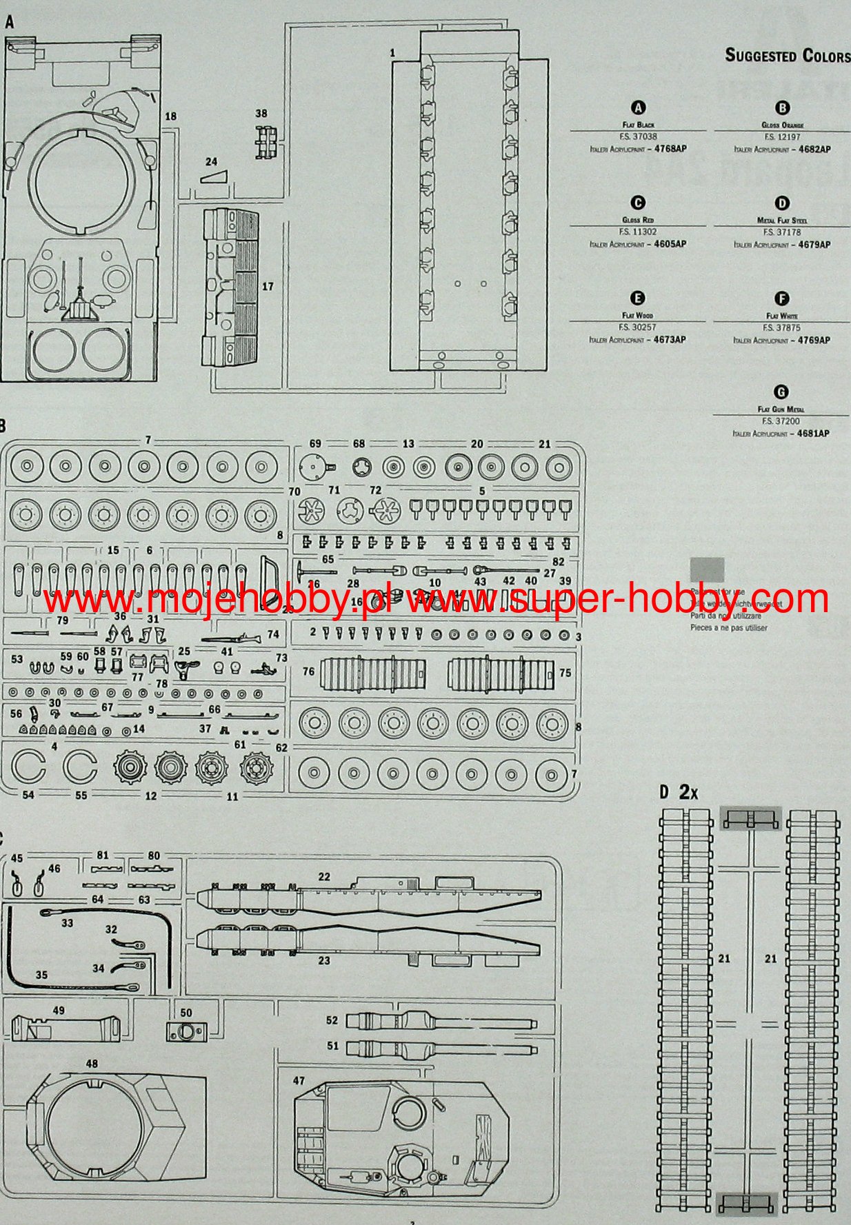 SUPER DECALS SHEET FOR 5 VERSIONS - COLOR INSTRUCTIONS SHEET - NEW GLUABLE RUBBER TRACKSEntered into service between the late '70s and early' 80s the Leopard 2 is considered one of the best armored vehicles in the world. It has been developed to offer the German “Bundeswehr” a powerful and modern Main Battle Tank able to replace the Leopards 1. The main armament is the 120mm. Rheinmetall L/55 smoothbore gun. Despite is heavy armor, the Leopard 2 is able to reach a significant speed of 65 km/h and it has a good performance on every kind of terrains. From the first versions, the MBT has been constantly improved and updated. The Leopard 2 A4, one of the most widespread version, is adopting an advance fire control system and modern hi-tech materials able to increase the protection capability. A part Germany, the Leopard 2 was able to achieve a good commercial success in many countries as Holland, Turkey, Austria, Greece and many others.
