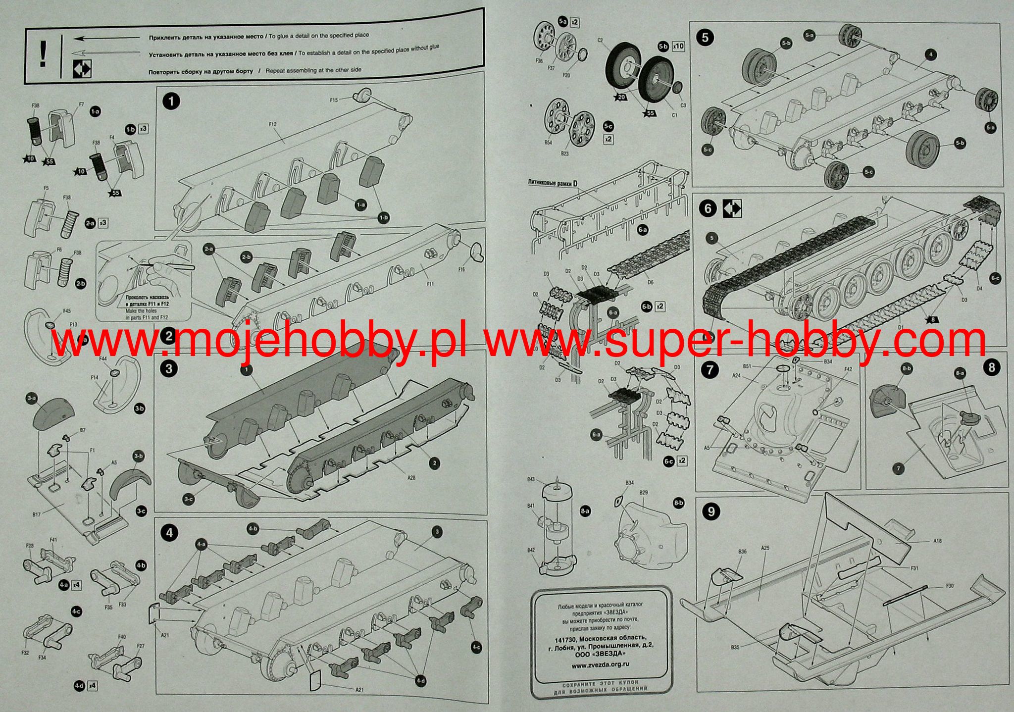 Сборная модель - Советский истребитель танков СУ-100. Историческая справка: СУ-100 советская противотанковая самоходная артиллерийская установка периода Второй Мировой войны, класса истребителей танков. Была создана на базе среднего танка Т-34/85 конструкторским бюро Уралмашзавода в конце 1943 начале 1944 г. как дальнейшее развитие T-34 ввиду недостаточных возможностей в борьбе с немецкими тяжёлыми танками. C 1951г. производство СУ-100 по советской лицензии осуществлялось в Чехословакии. Всего в СССР и Чехословакии было выпущено 4976 САУ этого типа. Первое боевое применение СУ-100 состоялось в январе 1945 г. В дальнейшем СУ-100 использовались в ряде операций Великой Отечественной и Советско-японской войны. Набор деталей из пластмассы для сборки одной модели танка. Модель собирается при помощи специального клея, выпускаемого предприятием Звезда. Состав набора: отливки инструкция по сборке декаль цветной вкладыш