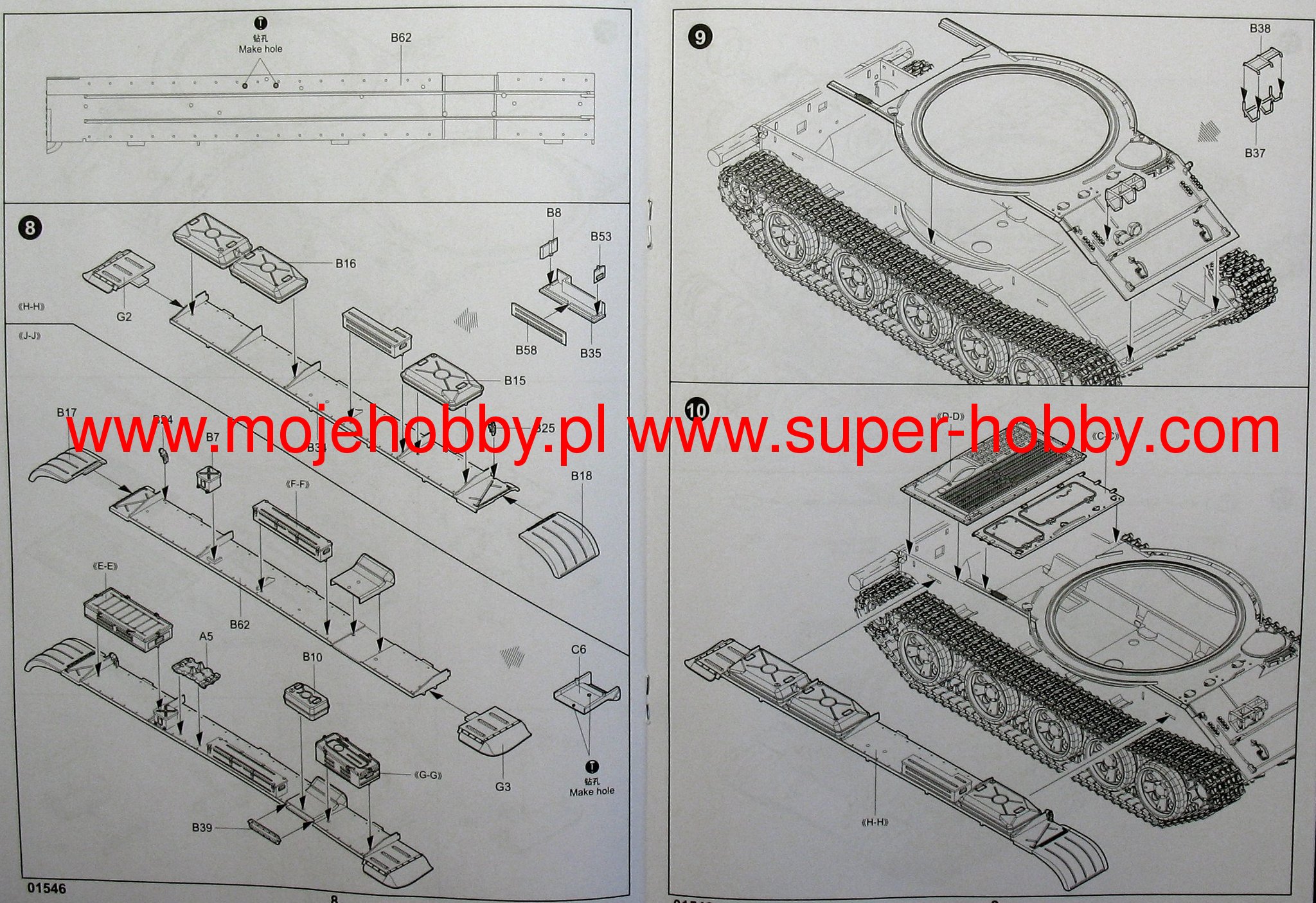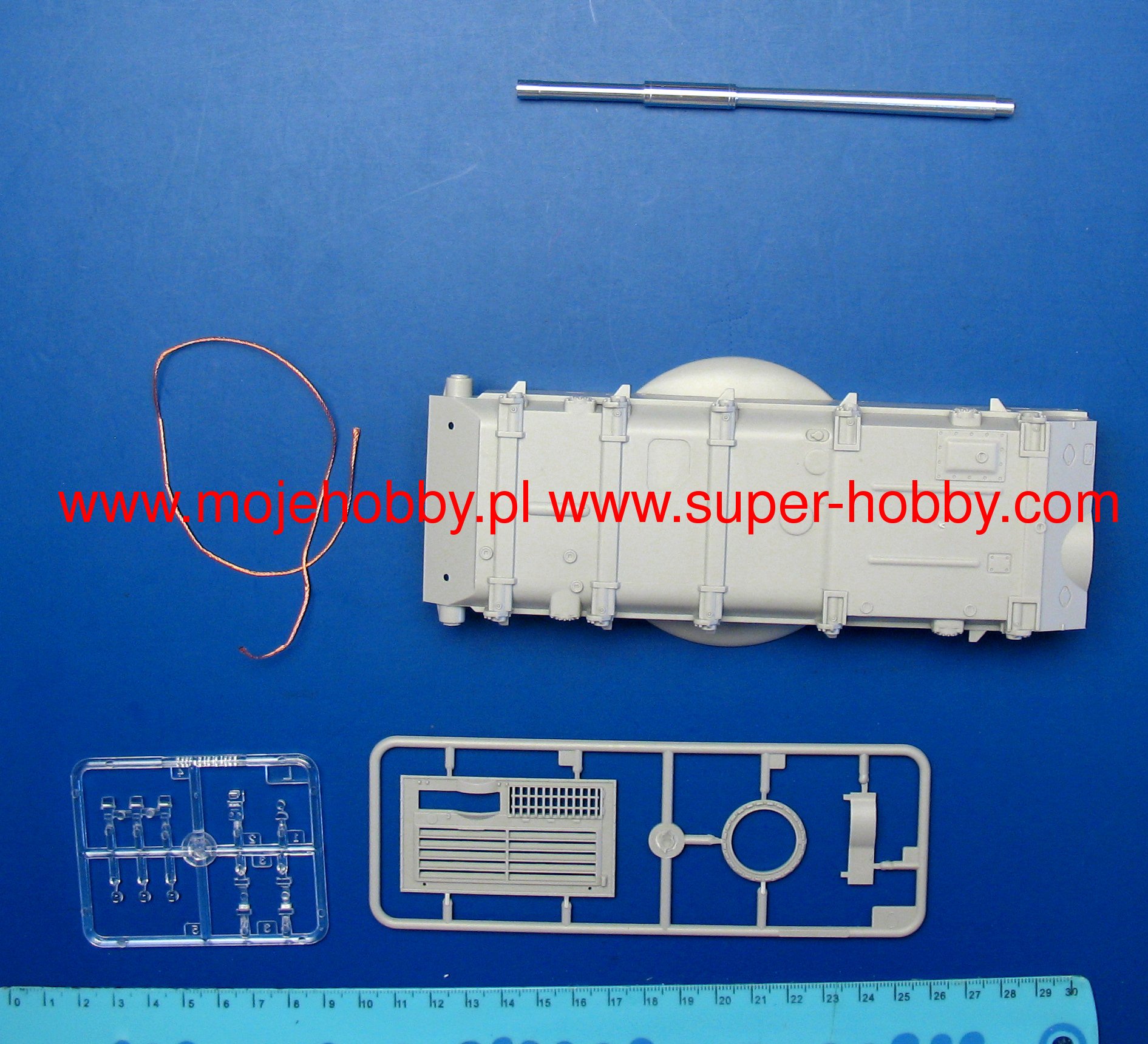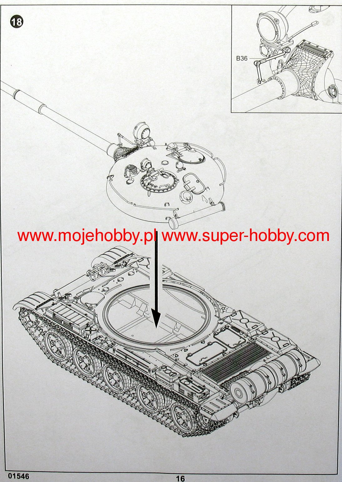 Дополнительная информация Tип 62 изначально разрабатывался для поддержки Тип 55, будучи в целом Тип -55 с более мощной, 115 мм пушкой 2А20. Основным отличием между двумя машинами был облегченный корпус Тип -62 и башня новой конструкции. Снаряды нового орудия были способны пробивать 300 мм брони на дистанции 1000 метров, этого было достаточно для поражения американского M48 и поздних версий британского "центуриона". Изначально, роль Т-62 сводилась к поражению целей на дальней дистанции, тогда как остальные задачи выполнял Тип-55. Но позднее, Тип -62 выполнял все функции, став первой в мире воплощенной концепцией Основного боевого танка. Не смотря на появление в 1960 году, и лучшие характеристики приемника Тип -72, Тип -62 используется и по сей день во многих армиях мира. Самым значительным эксплуататором вне Варшавского пакта являются Арабские страны, такие как Египет, Ирак, Сирия. Израиль получил большое количество Тип -62 в столкновениях с соседям, позже модернизировав значительную часть машин до своих стандартов. Длина модели: 286 мм Ширина: 95 мм Количество деталей: более 490 Металлические части: ствол орудияФототравления: 1 шт. Особенности модели: гусеницы из 217 отдельных деталей
