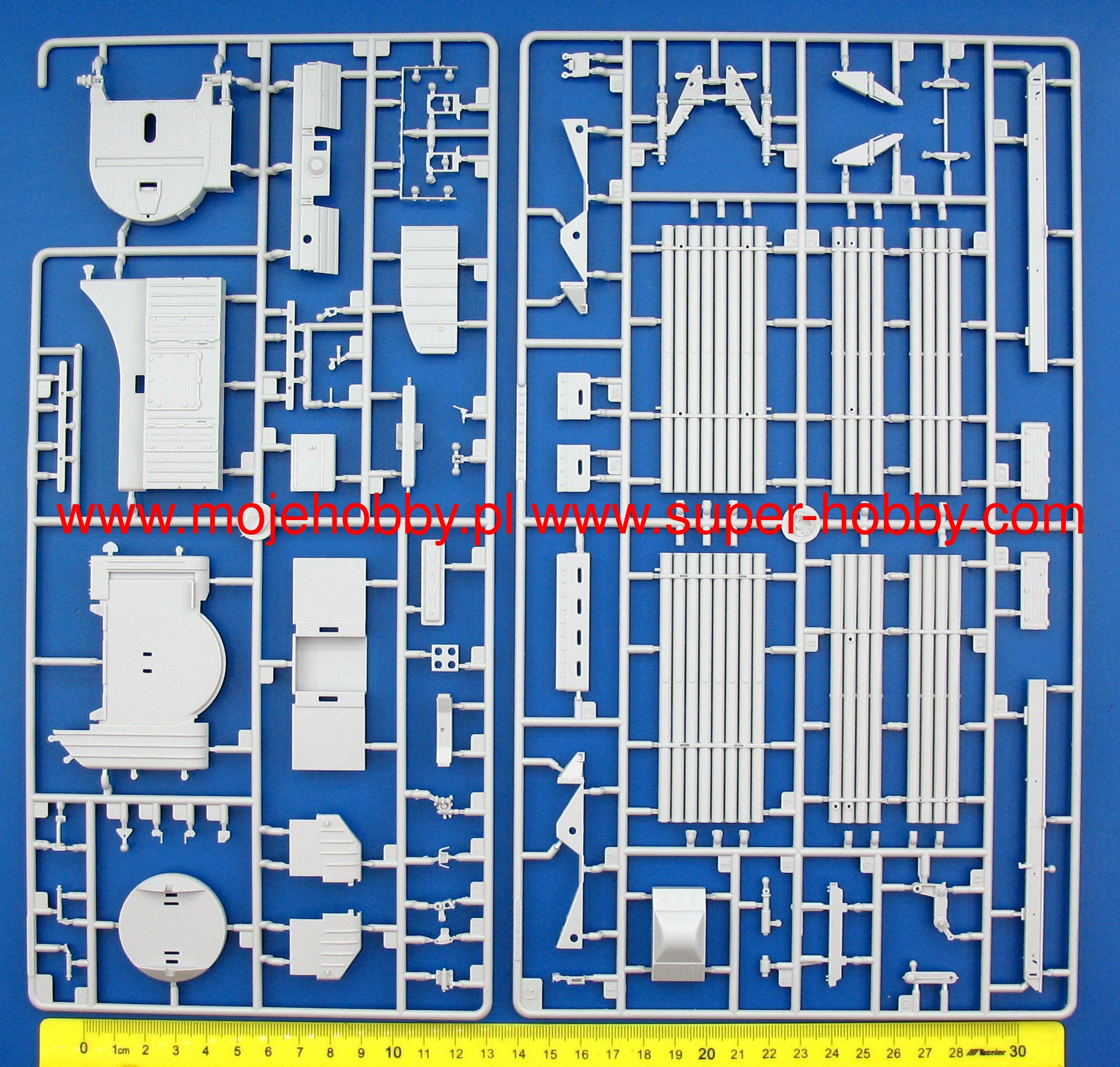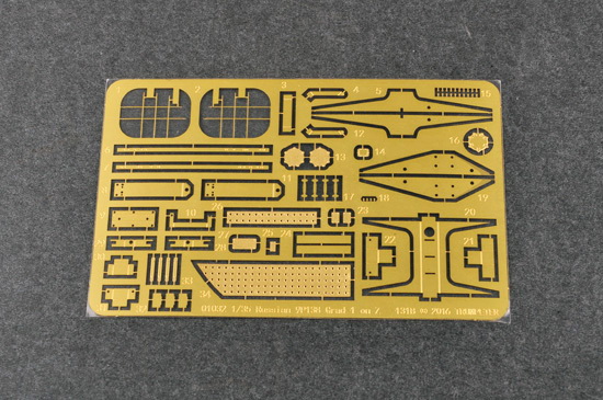 Описание РСЗО Град (Индекс ГРАУ 9К51) советская реактивная система залпового огня (РСЗО) калибра 122 мм. Предназначена для поражения открытой и укрытой живой силы, небронированной техники и бронетранспортёров в районе сосредоточения, артиллерийских и миномётных батарей, командных пунктов и других целей, решения других задач в различных условиях боевой обстановки. Длина: 200,5 мм Ширина: 76,4 мм Всего деталей более 500 Фототравление Всего литников 10 + шины