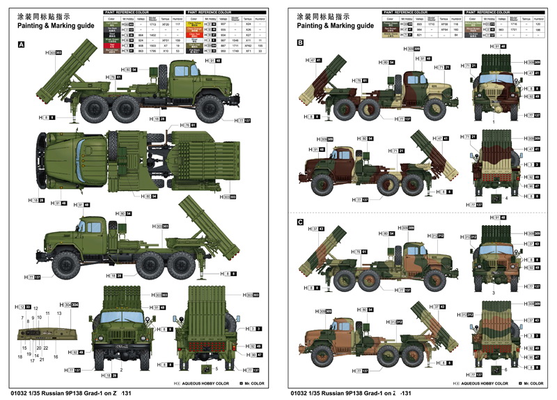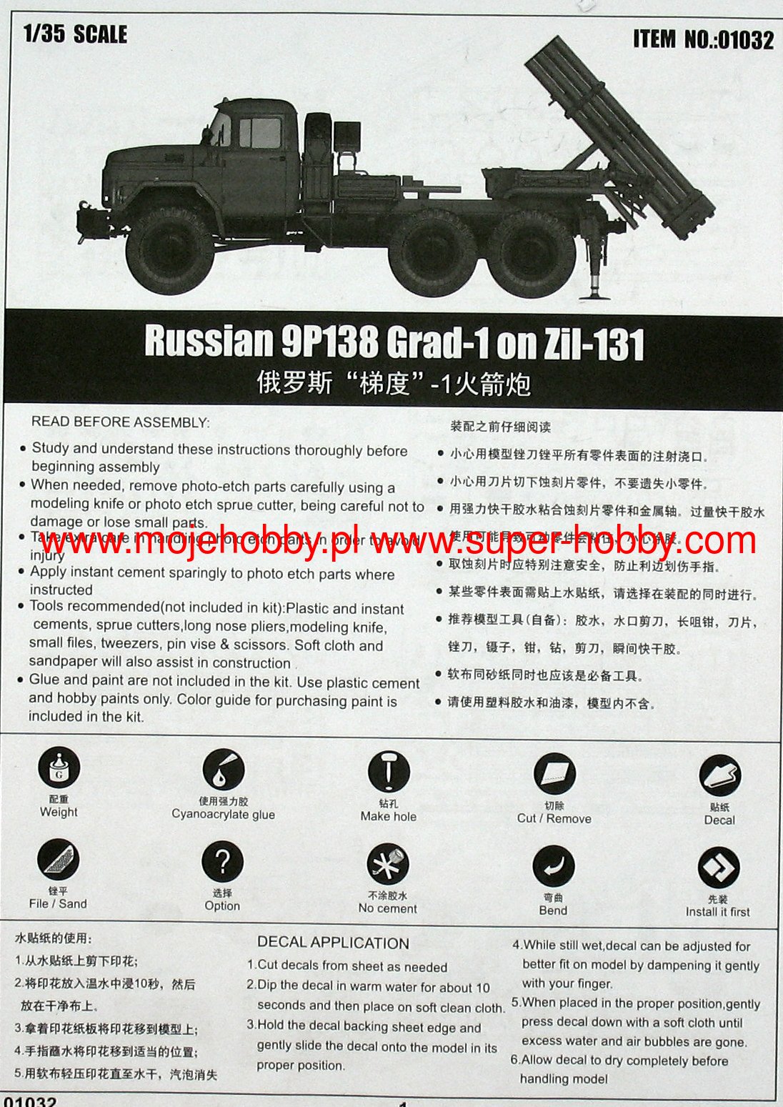 Купить 01032 ТЕХНИКА И ВООРУЖЕНИЕ RUSSIAN 9P138 GRAD-1 ON З&Л-131 (1/35)