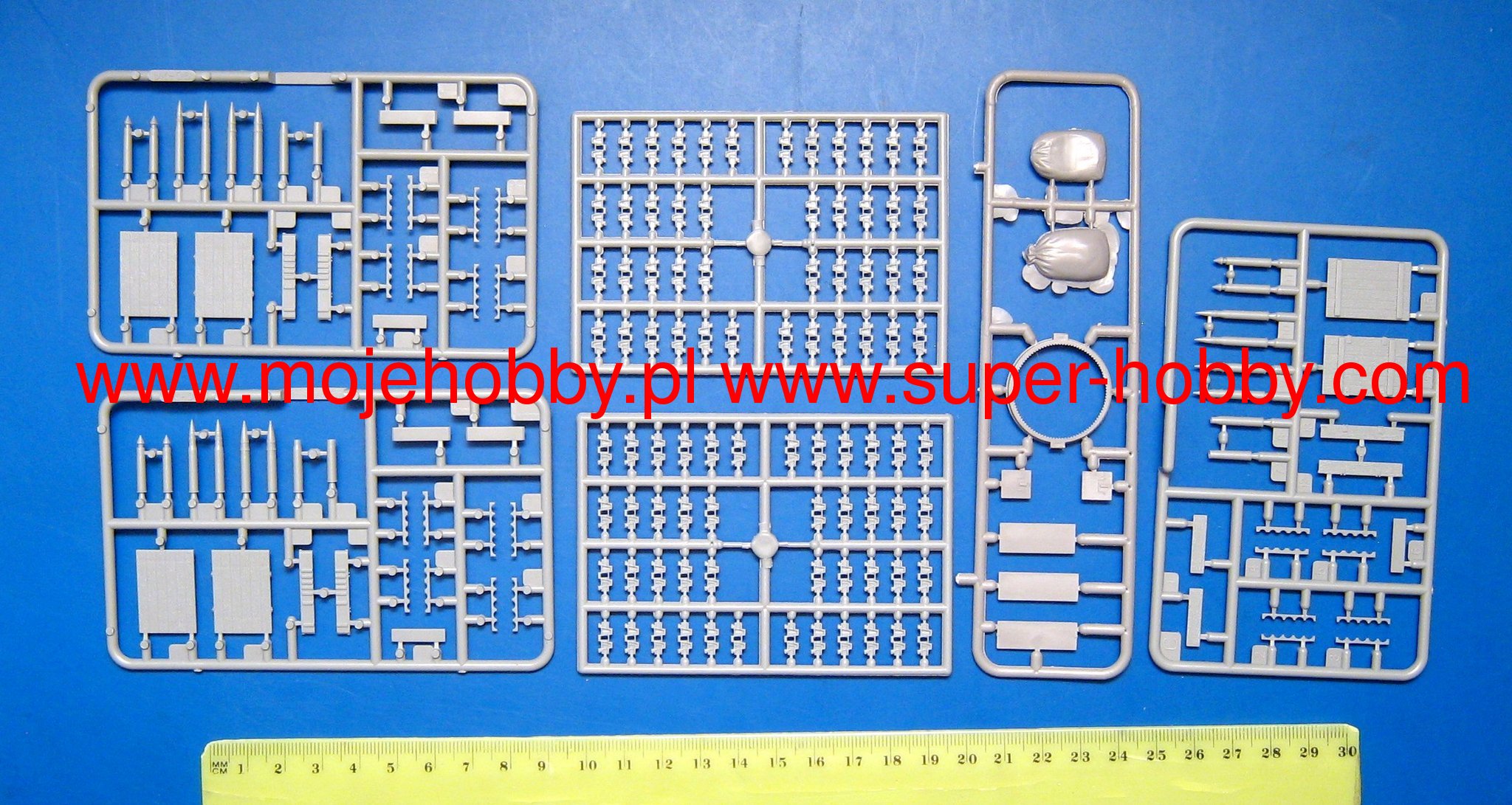 Набор содержит модель артиллерийского тягача с пушкой и 5 неокрашенных фигур.
