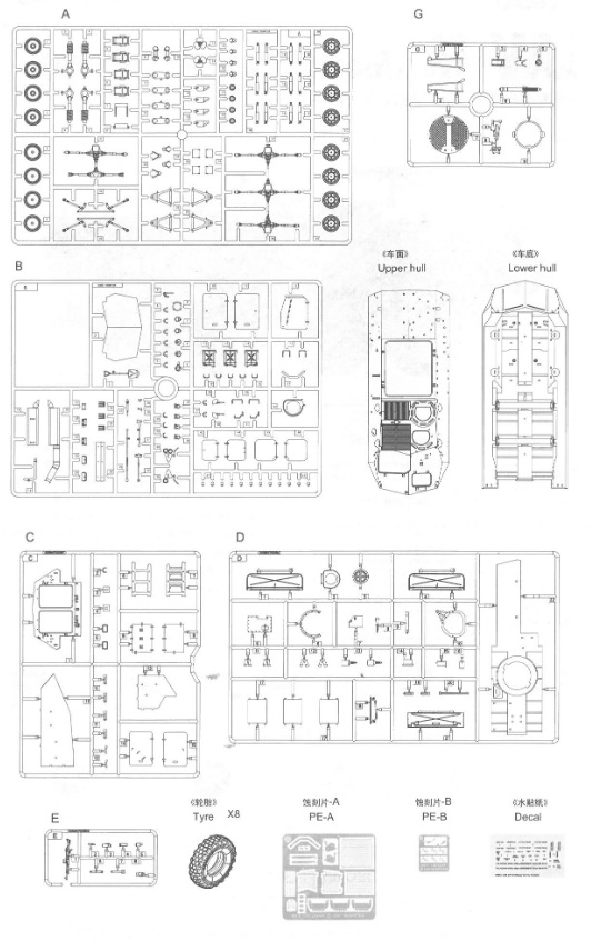 Описание LAV-25 (англ. LAV-25 Light Armored Vehicle лёгкая бронированная машина) канадская боевая разведывательная машина, выпускаемая компанией General Dynamics Land Systems Canada для Корпуса морской пехоты США, являющаяся дальнейшим развитием швейцарской бронемашины MOWAG Piranha I LAV-M (Мortar) самоходный миномёт, выпускается в двух вариантах: самоходный 81-мм миномёт экипаж 5 человек, основным вооружением является установленный в боевом отделении 81-мм гладкоствольный миномёт M252 (боекомплект изначально составлял 90 артиллерийских мин, впоследствии 99 мин), дополнительным 7,62-мм пулемёт M240 (с боекомплектом 1000 патронов); самоходный 107-мм миномёт экипаж 5 человек, масса 12,08 тонн, основным вооружением является установленный в боевом отделении 107-мм миномёт (с боекомплектом 80 артиллерийских мин), дополнительным 7,62-мм пулемёт M240 (с боекомплектом 1000 патронов), также оснащённый двумя дымовыми гранатомётами M257 (с боекомплектом 16 дымовых гранат L8A1). Длина: 184,6 мм Ширина: 81,8 мм Высота: 77,7 мм Всего деталей 237 шт. Фототравление Всего литников 6, плюс низ корпуса, верх корпуса, 8 шин