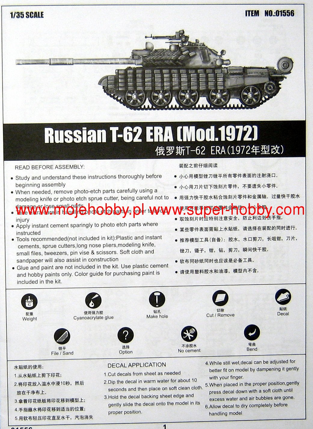 Купить ТАНК Т-62 С ДИНАМИЧЕСКОЙ ЗАЩИТОЙ МОДЕЛЬ1972Г (1/35)