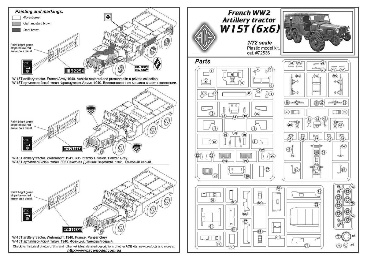 СБОРНАЯ МОДЕЛЬ FRENCH WW2 ARTILLERY TRACTOR (6X6) W15T, ace 1/72