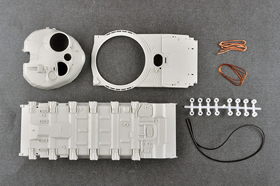 Описание Танк-72А (объект 172М-1; 1979) модернизация танка Танк-72. Основные отличия: башня с комбинированной бронёй, усилено бронирование ВЛД, лазерный прицел-дальномер ТПД-К1, ночной прицел наводчика ТПН-3-49 с осветителем Л-4, сплошные бортовые противокумулятивные экраны, пушка 2А46 (вместо пушки 2А26М2), система 902Б запуска дымовых гранат, система защиты от напалма, система дорожной сигнализации, ночной прибор ТВНЕ-4Б механика-водителя, увеличенный динамический ход катков, двигатель В-46-6. С 1984 по ОКР Отражение на ВЛД наваривалась дополнительная стальная плита толщиной 30 мм. Длина: 287,9 мм Ширина: 102,4 мм Всего деталей 1200+ Металлические детали - проволока, трос Фототравление Всего 24 литника, верх корпуса, низ корпуса и башня