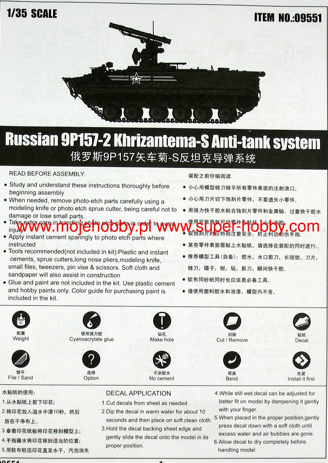 Купить 09551 ТЕХНИКА И ВООРУЖЕНИЕ БТР RUSSIAN 9P157-2 KHRIZANTEMA-S ANTI-TANK SYSTEM (1/35)