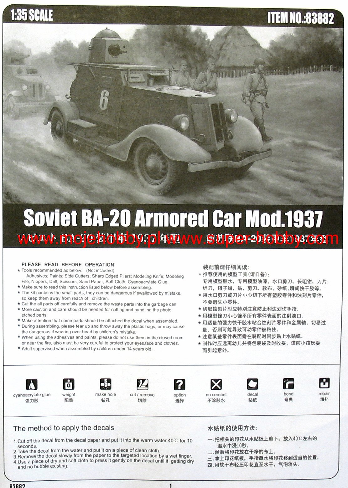 Купить АВТОМОБИЛЬ SOVIET BA-20 ARMORED CAR MODEL1937 (1:35) (1/35)