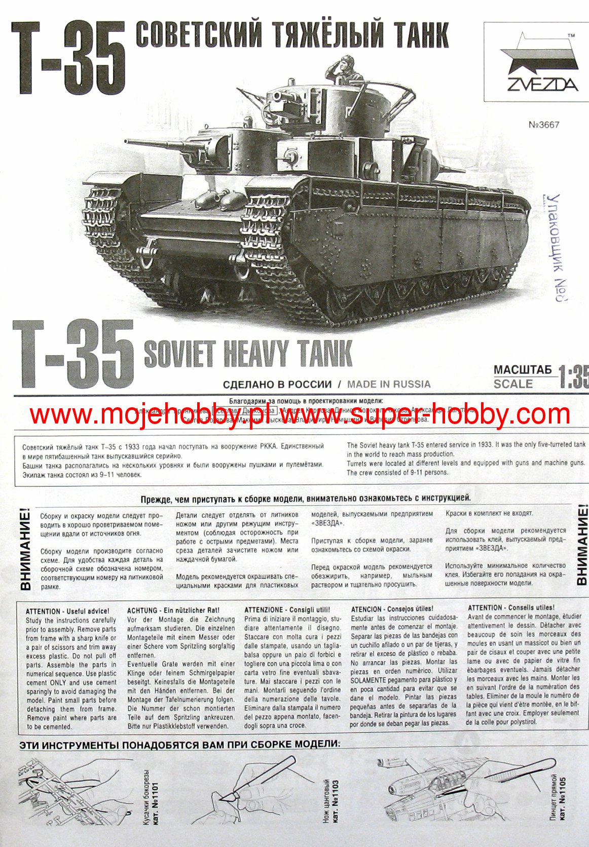 Сборная модель - Советский тяжелый танк Т-35 Историческая справка: Советский атлант в 1930-м году ОКМО под руководством Н.В. Барыкова начал разработку самого большого танка за всю историю СССР. На танк Т-35 было установлено пять орудийных башен, благодаря чему, он обладал беспрецедентной огневой мощью. Т-35 ежегодно принимал участие в парадах и даже успел отметиться в кадрах кинохроники. Но его боевая жизнь не была столь же впечатляющей. Все Т-35 были потеряны уже в начале Великой Отечественной войны в результате неисправностей. До наших дней сохранился лишь один экземпляр этого танка. Однако сейчас, у каждого появилась возможность познакомиться с этой грозной машиной. Встречайте модель, поражающую своим масштабом и получившую право стать премьерным набором, выпущенным в нашем новом дизайне! На что стоит обратить внимание идеально правильная геометрия корпуса и башен, полное соответствие историческому прототипу, проработанные до мельчайших подробностей ходовая часть и интерьер главной башни. Набор деталей из пластмассы для сборки одной модели танка. Модель собирается при помощи специального клея, выпускаемого предприятием Звезда. Состав набора: отливки инструкция по сборке декаль
