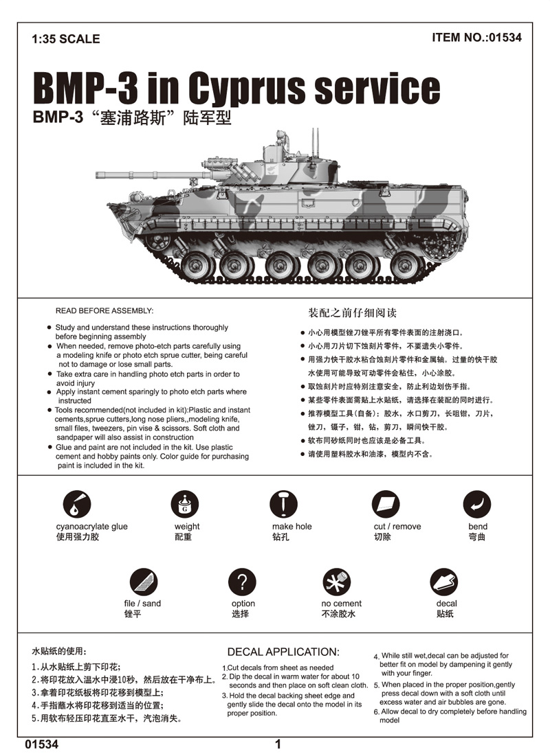 Купить БМП-3 ВООРУЖЕННЫЕ СИЛЫ КИПРА КУПИТЬ В МОСКВЕ (TRUMPETER 01534) БОЕВЫЕ МАШИНЫ (1/35)