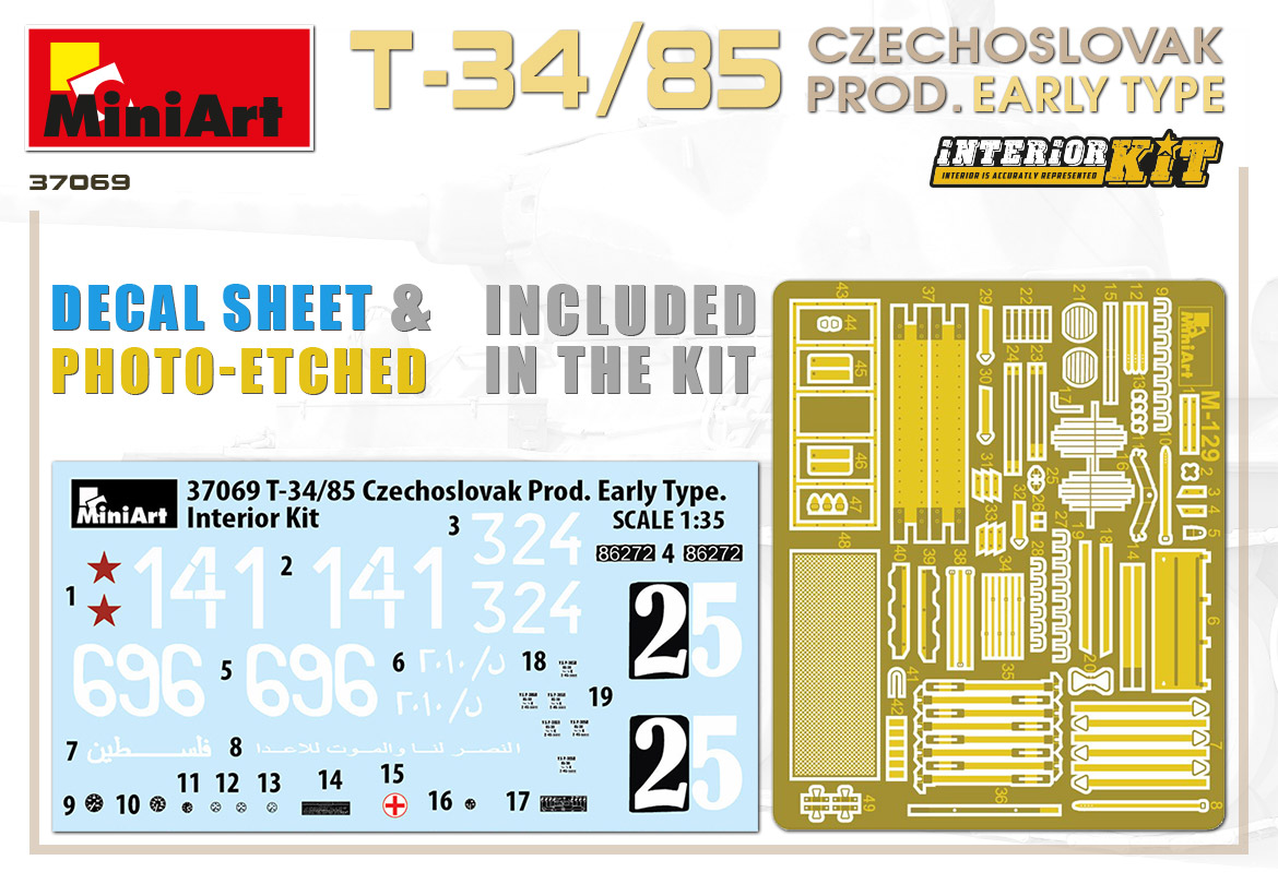 Т-34/85 ЧЕХОСЛОВАЦКОГО ПРОИЗВОДСТВА. РАННЕГО ТИПА. С ИНТЕРЬЕРОМ miniart 1/35