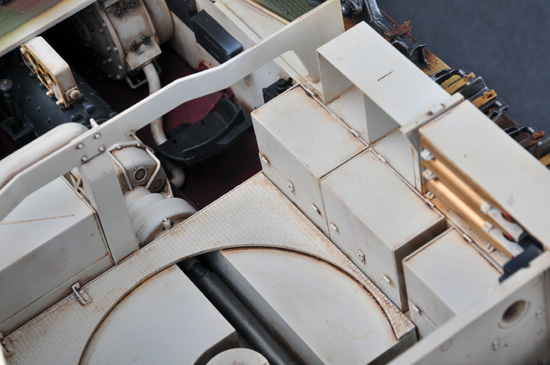 Дополнительная информация Panzerkampfwagen IV, широко известный как Panzer IV, был средним танком разработанным Германией в конце 1930-х и активно использовавшимся во Второй мировой войне. Panzer IV был изначально разработан как танк пехотной поддержки и не предназначался для борьбы с бронетехникой противника, эта цель была отдана более лёгкому Panzer III. Однако когда недостатки предвоенной доктрины ведения боя стали осознаваться всё четче, Panzer IV была передана роль борьбы с танками противника. Panzer IV был самым массовым танком Германии Второй мировой войны, кроме того он использовался как основа для многих других боевых машин включая Sturmgeschütz IV, самоходное ПВО Wirbelwind и САУ Brummbär. Panzerbefehlswagen IV еще один вариант Panzer IV представляющий собой командирский танк. Конверсия предусматривала установку радиооборудования, антенн, проводки, генераторов и прочего оснащения, для чего пришлось уменьшить боезапас машины. Танк мог координировать действия с близко расположенной бронетехникой, пехотой и даже авиацией. Длина модели: 438.7 мм Ширина: 207.6 мм Количество деталей: более 2000 Металлические детали: ствол орудия, трос, пружины. Фототравления: 8 пластин Полная детализация интерьера. Гусеницы из индивидуальных звеньев.