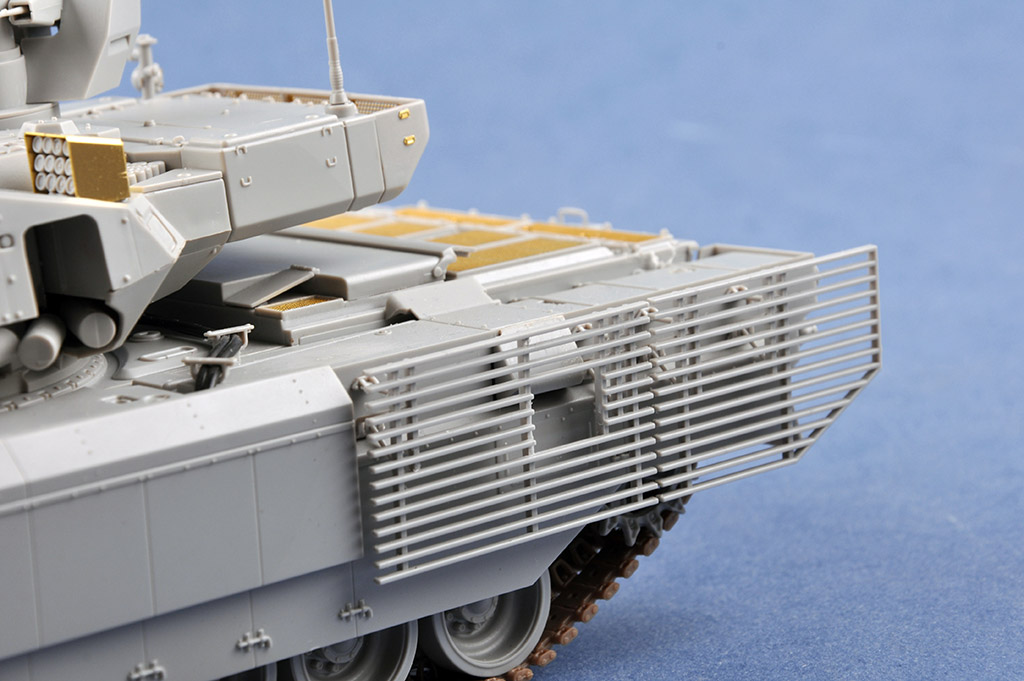 Описание Танк-14 Арм@та (Индекс ГАБТУ Объект 148) российский основной боевой танк с необитаемой башней, на базе универсальной гусеничной платформы Арм@та Широкой публике Танк-14 был представлен на параде Победы в 2015 году вместе с другими изделиями на базе Арм@ты. В 2015 году была изготовлена предсерийная партия танков. 4 марта 2024 года глава госкорпорации Ростех Сергей Чемезов заявил, что танк Танк-14 Арм@та стоит на вооружении ВС РФ Длина: 328,9 мм Ширина: 102,2 мм Всего деталей 730+ Металлические детали - трос Фототравление Всего 15 литников и нижняя часть корпуса