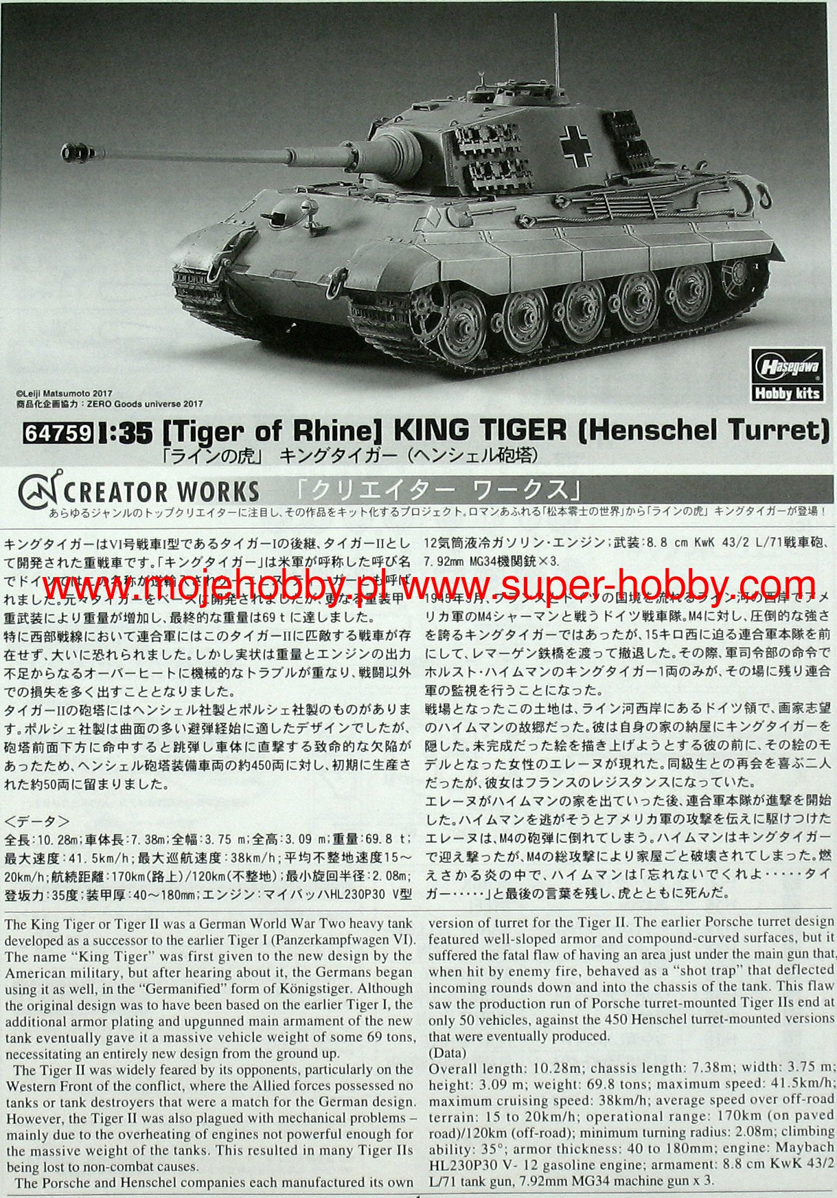 1/35 ТАНК TIGER OF RHINE KING TIGER (HENSCHEL TURRET) (1/35) продается в 1 магазинах. Выберите подходящий Вам интернет-магазин и перейдите по ссылке «В магазин».