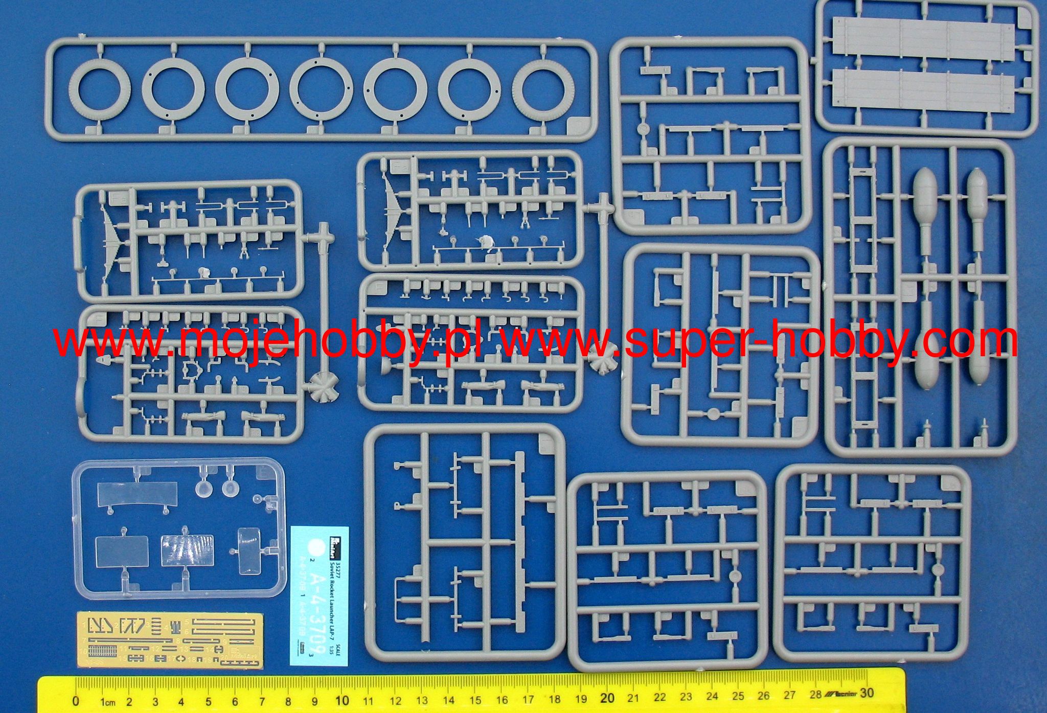 HIGHLY DETAILED MODEL DOORS, CAR HOOD, PLATFORME BOARDS CAN BE POSED OPEN OR CLOSED ACCURATE ENGINE CLEAR PARTS INCLUDED PHOTO-ETCHED PARTS INCLUDED DECAL SHEET FOR 2 VARIANTS REALISTIC WOODEN PATTERN 2 TYPES OF ROCKETS: 28cm WK Spr & 32cm WK Flamm