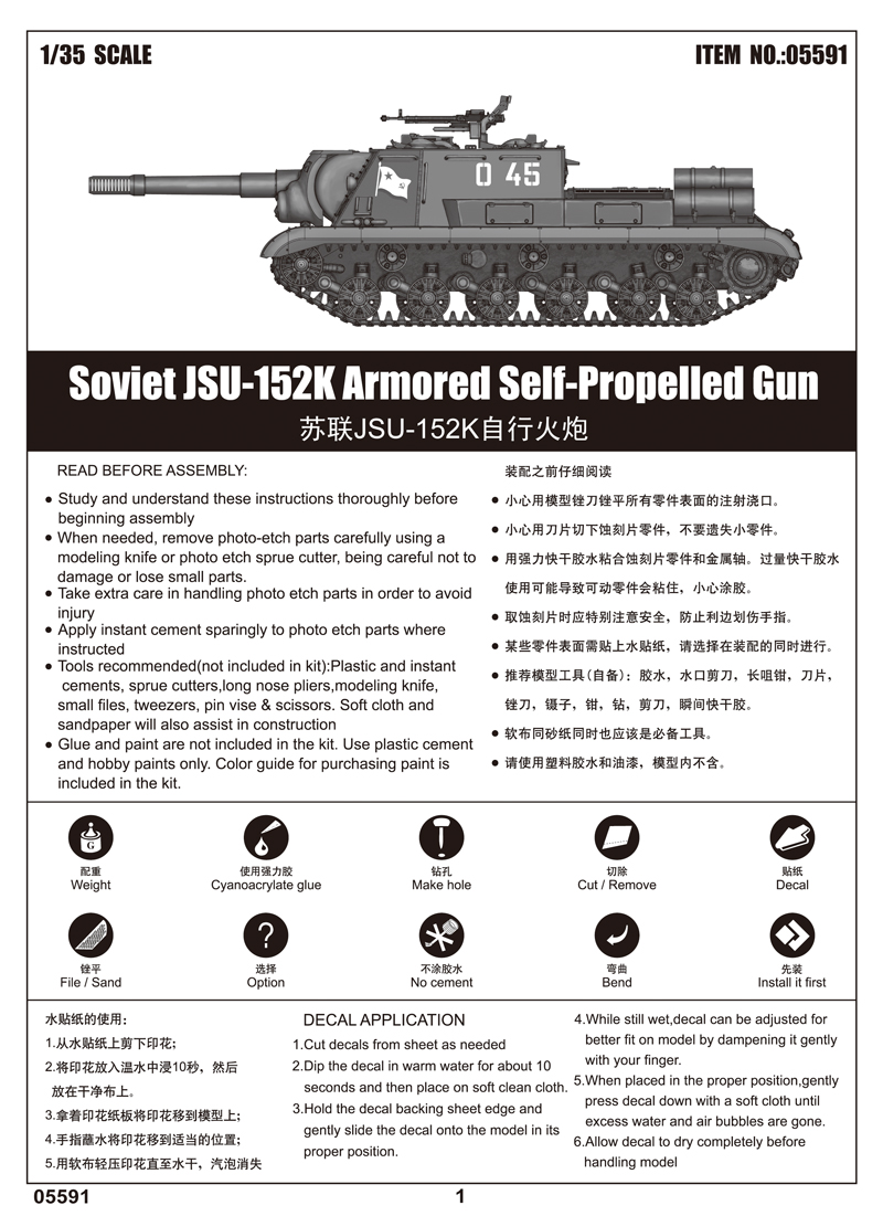 Купить 05591 ТЕХНИКА И ВООРУЖЕНИЕ САУ SOVIET JSU-152K (1/35)