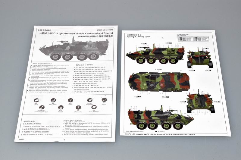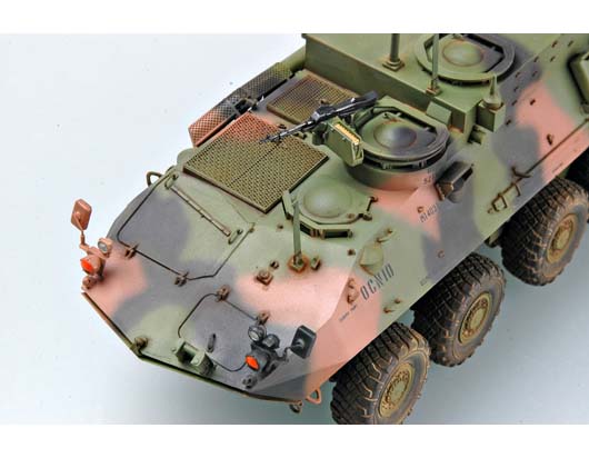 Дополнительная информация LAV-C2 - это вездеходное, всепогодное транспортное средство с ночными возможностями. LAV-CC - это крыша с крышей для крыши типа I, оснащенная станциями связи, которая позволяет Командующему войскам командовать, контролировать и сообщать (C3) о действиях своих войск при полной бронированной защите. Эта мобильная командная станция обеспечивает полевых командиров всеми необходимыми ресурсами для управления и координации легких бронированных единиц во всех назначенных ролях. Он переносится по воздуху через C-130, C-141, C-5 и CH-53 E. При боевом нагружении имеется 200 готовых раундов и 800 снарядов с боеприпасами 7,62 мм. Есть 8 готовых раундов и 8 укрытых раундов дымовых гранат. Автомобиль можно сделать полностью амфибий в течение 3 минут. Длина: 6,4 м. Ширина: 2,5 м. Высота: 2,79 м. Снаряженная масса: 10877 кг. Вес брутто (макс.): 12791 кг. Рекомендуемые краски от производителя: Metal Black Olave Drab Clear Red Dark Gray Wood Breen Clear Orange Clear Blue Mediun Grey Green