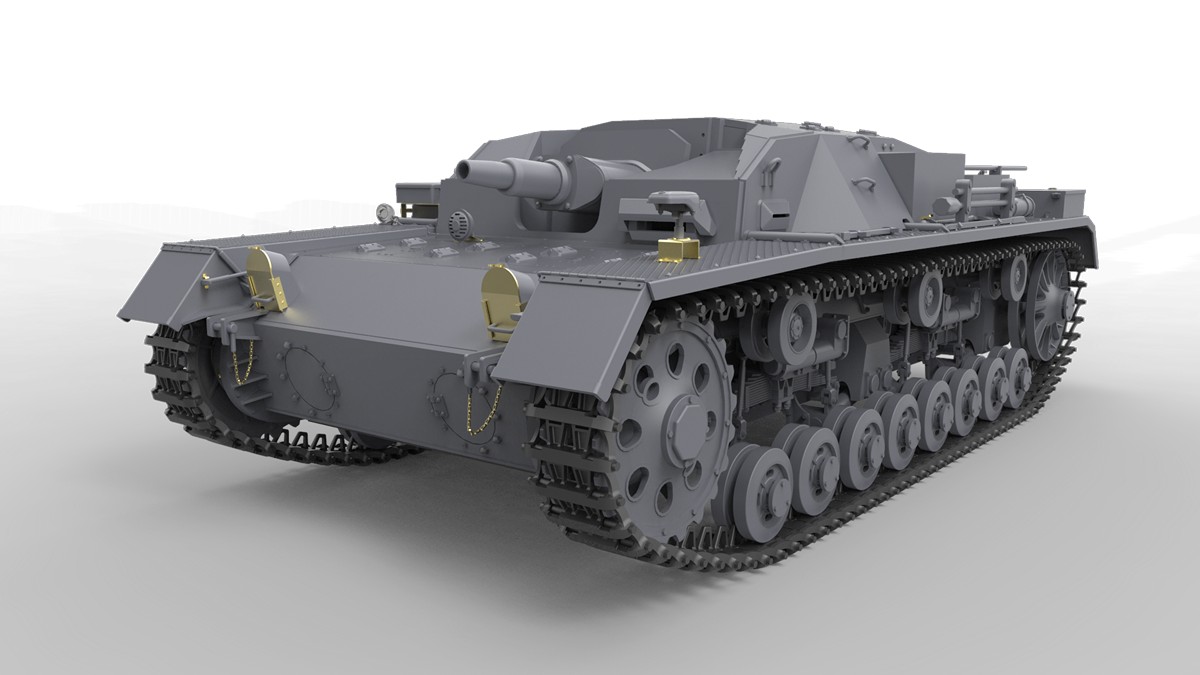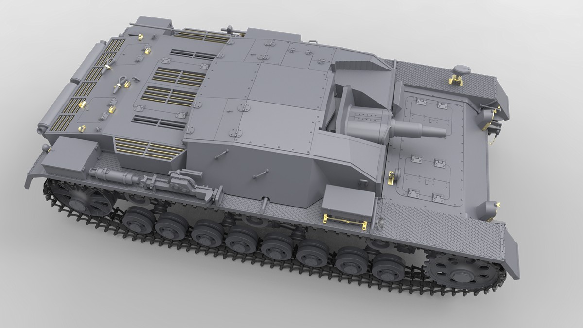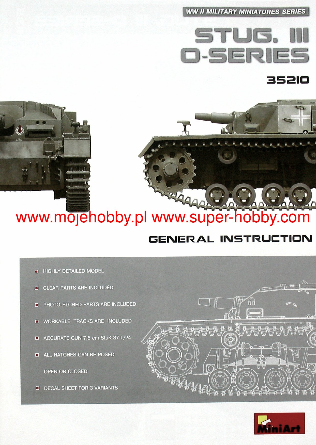 HIGHLY DETAILED MODEL CLEAR PARTS INCLUDED PHOTO-ETCHED PARTS INCLUDED WORKABLE TRACKS INCLUDED ACCURATE GUN 7,5 sm StuK 37 L/24 ALL HATCHES CAN BE POSED OPEN OR CLOSED DECAL SHEET FOR 3 VARIANTS