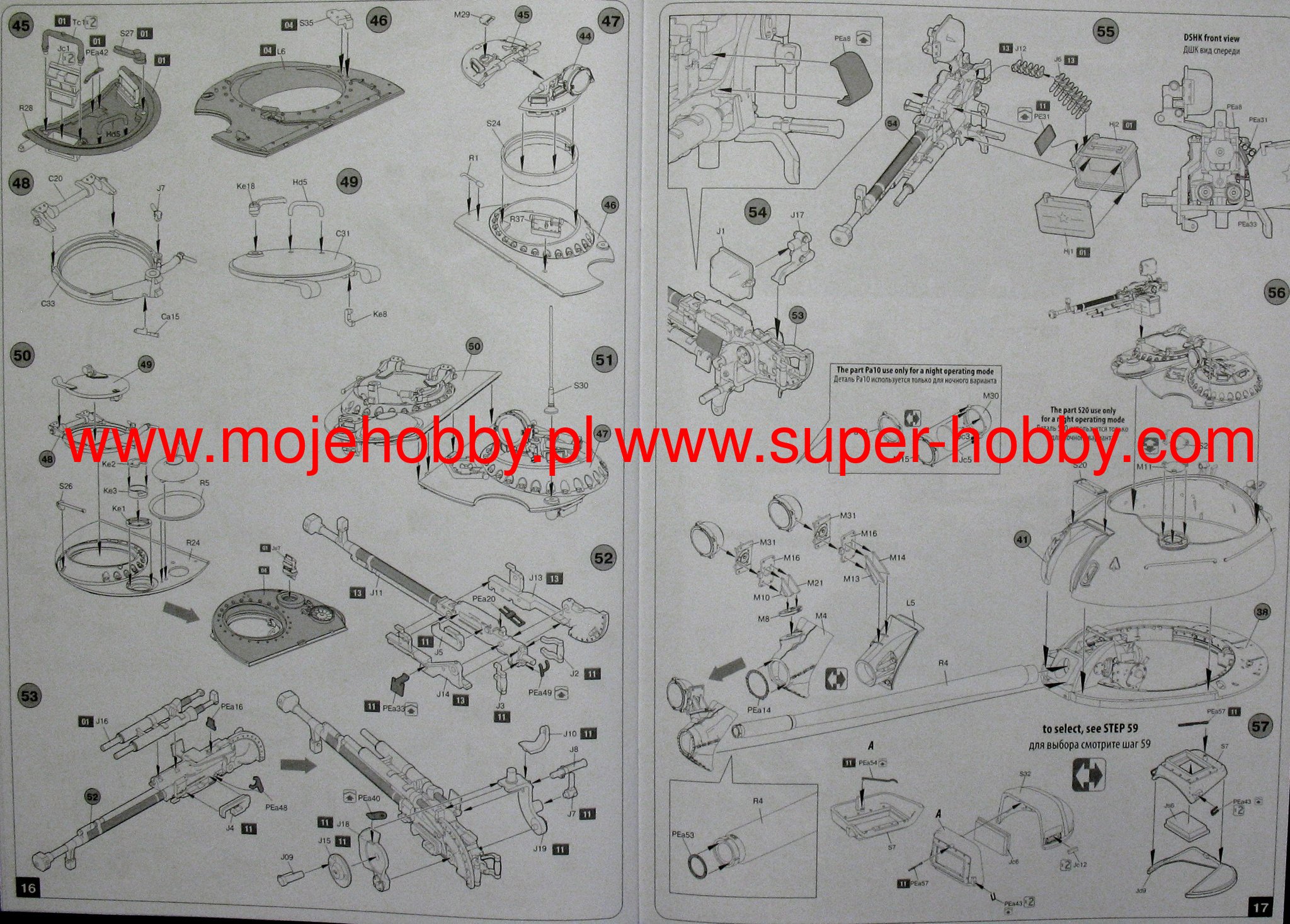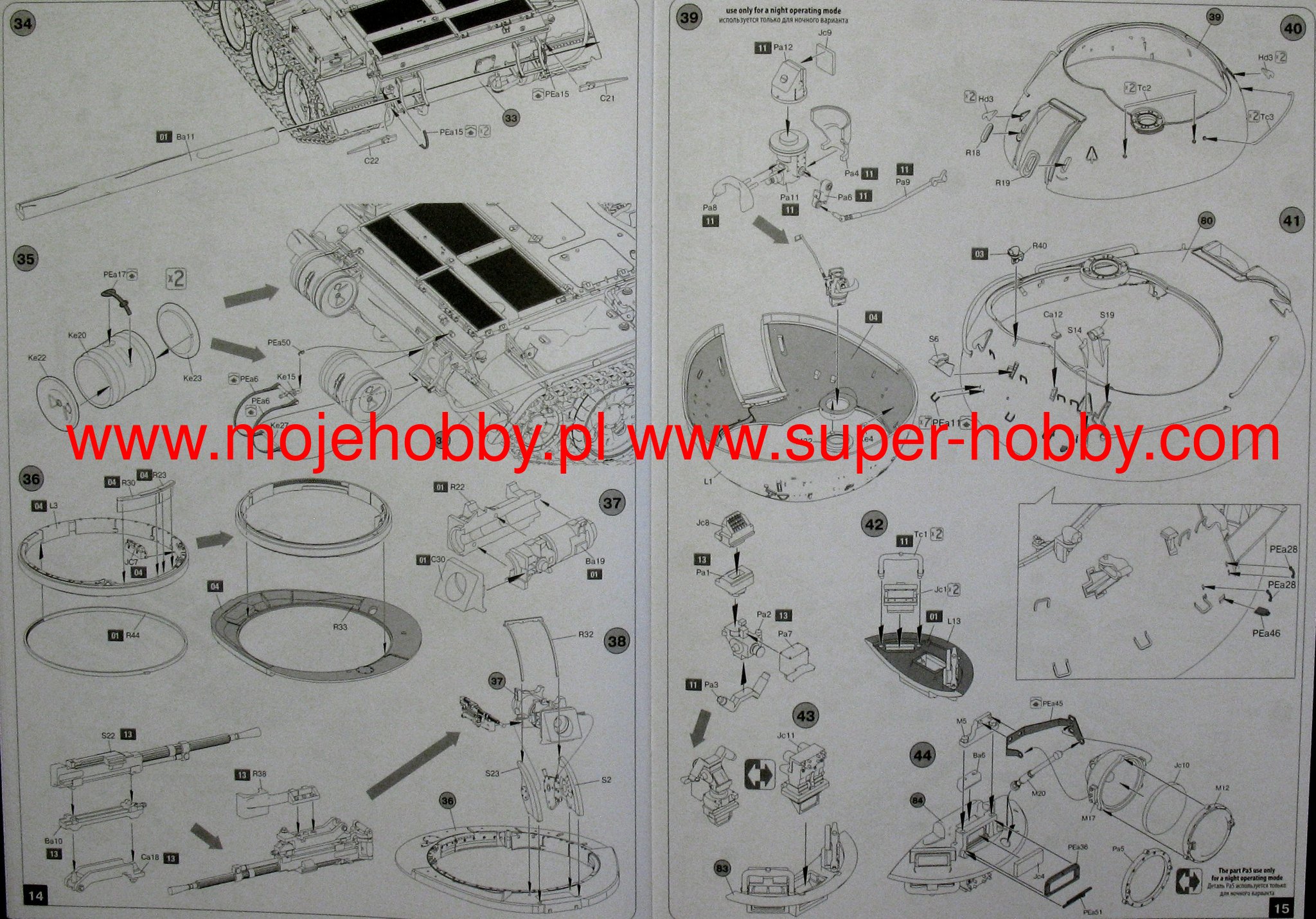 WORKABLE TORSION BARS TWO TYPES OF ROAD WHEELS ALL HATCHES CAN BE ASSEMBLED OPEN OR CLOSED BUILD-UP OPTIONS: 2 OPERATING MODES (DAY/NIGHT) DECALS SHEET FOR 4 OPTIONS KIT CONTAINS 801 parts 674 PLASTIC PARTS 108 PE Parts 19 PLASTIC CLEAR PARTS