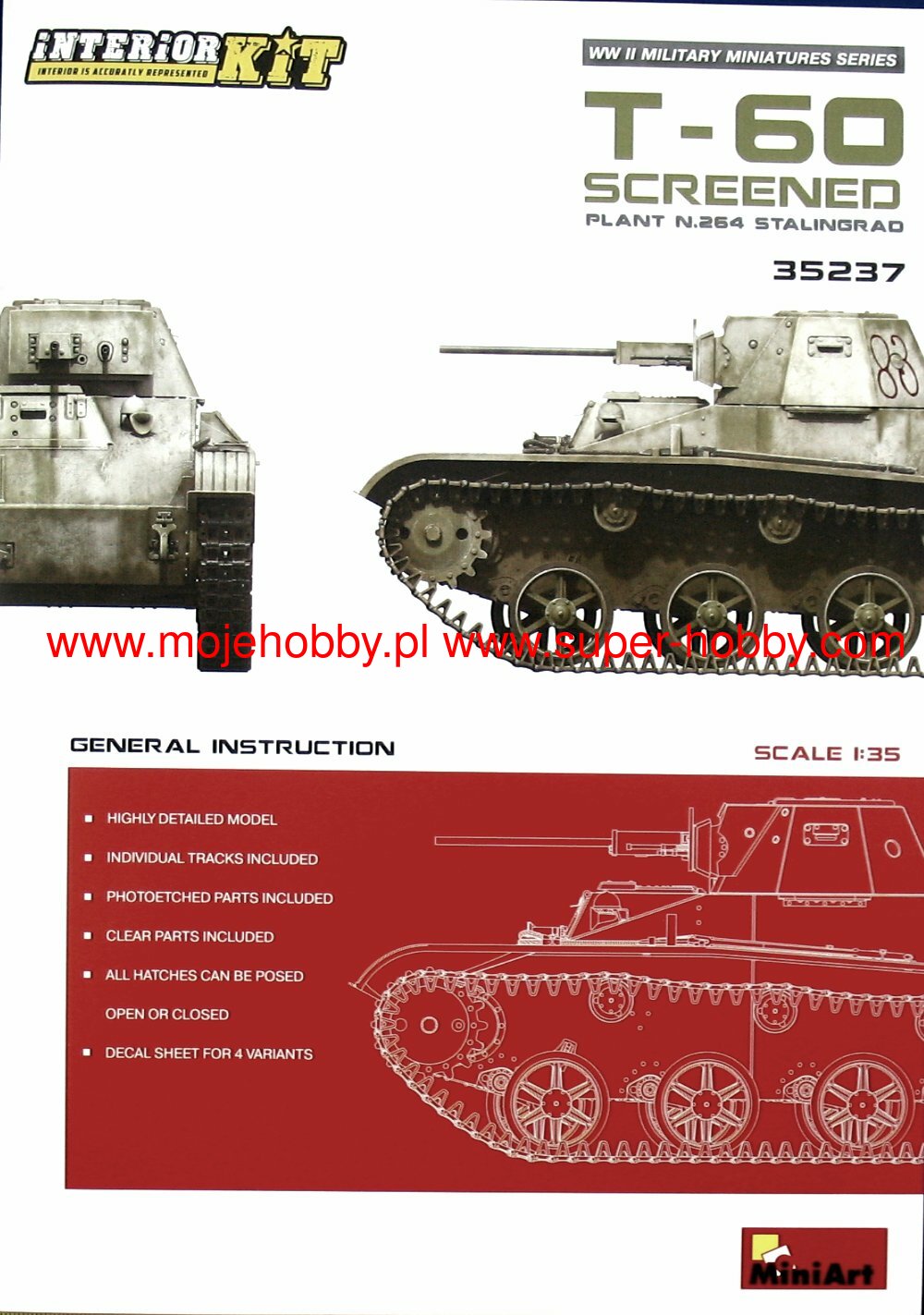 Купить T-60 ЭКРАНИРОВАННЫЙ (СТАЛИНГРАДСКИЙ ТРАКТОРНЫЙ ЗАВОД №264) С ИНТЕРЬЕРОМ (1/35)