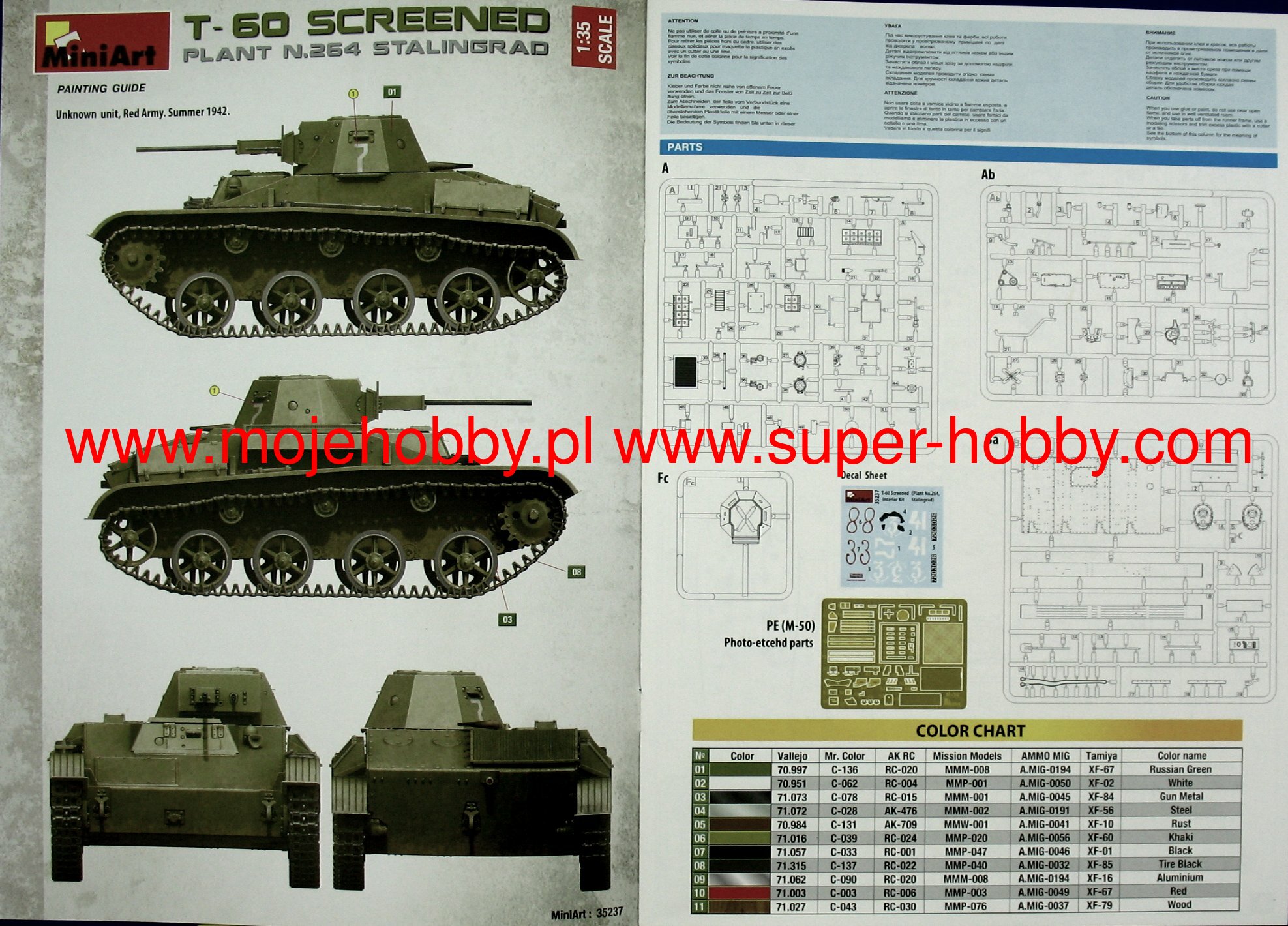 T-60 ЭКРАНИРОВАННЫЙ (СТАЛИНГРАДСКИЙ ТРАКТОРНЫЙ ЗАВОД №264) С ИНТЕРЬЕРОМ (1/35) продается в 2 магазинах. Выберите подходящий Вам интернет-магазин и перейдите по ссылке «В магазин».