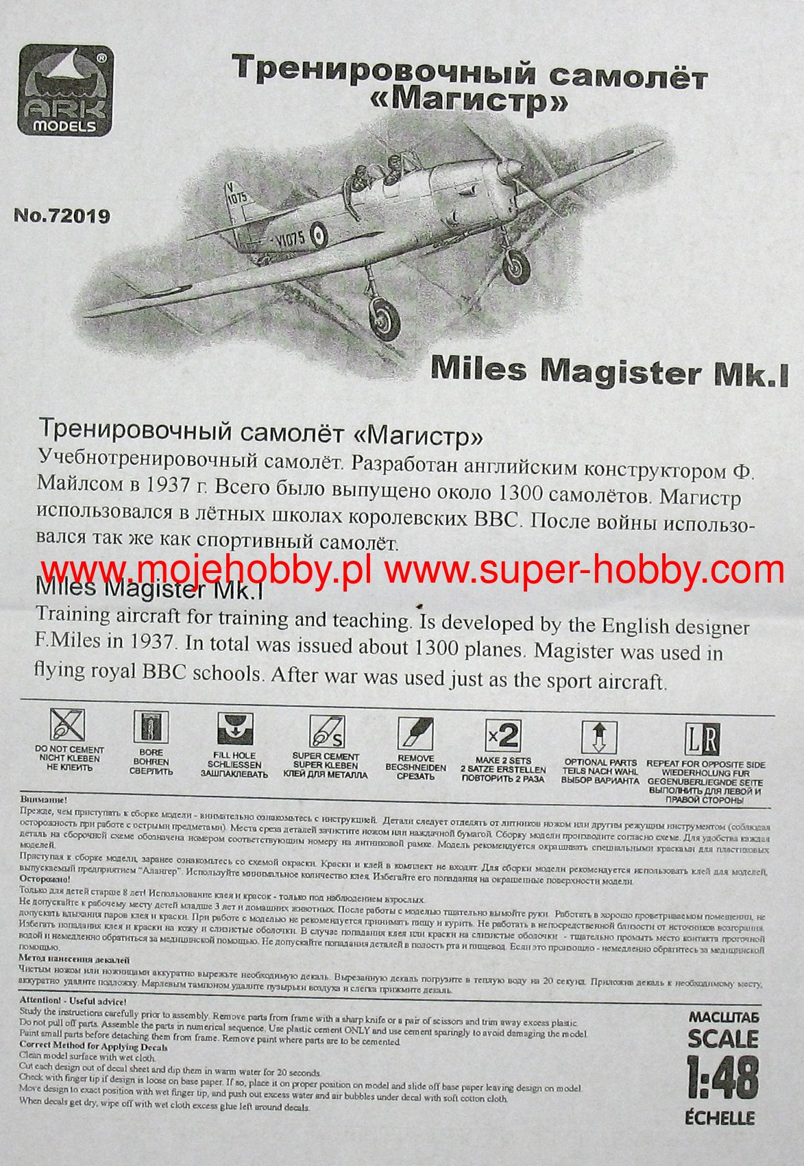 Дополнительная информация В мае 1937 г. в лётные школы Королевских ВВС начали поступать новые двухместные учебно-тренировочные самолёты Магистр. Они хорошо зарекомендовал себя в эксплуатации и к началу Второй мировой войны являлись основными машинами в лётных школах, где служили до окончания боевых действий. Помимо ВВС, магистры поставлялись и в аэроклубы, а также продавались за рубеж. Всего было изготовлено 1293 самолёта Магистр. Количество деталей: 30. В комплекте: литники для сборки, декали и инструкция.