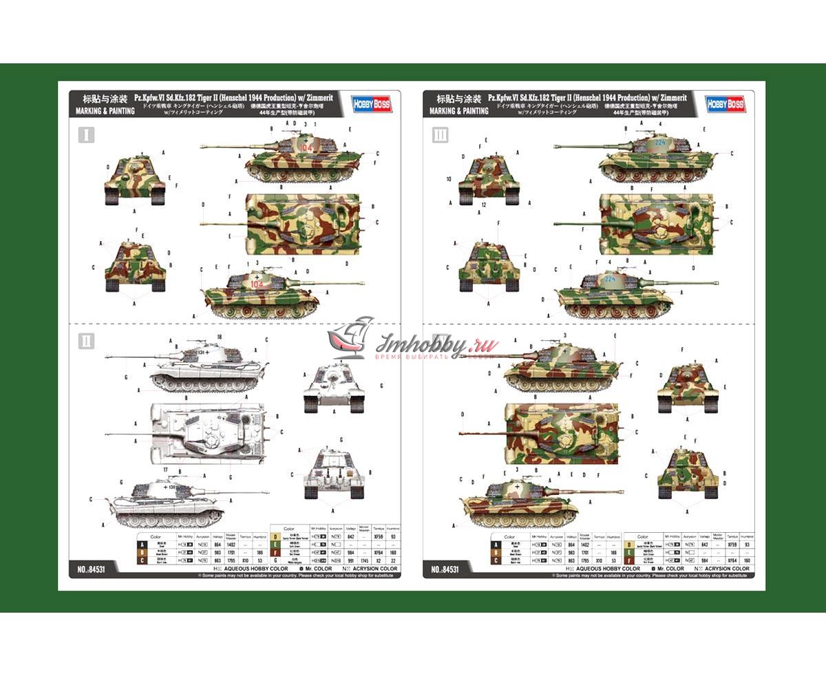 PZ.KPFW.VI SD.KFZ.182 TIGER II (HENSCHEL 1944 PRODUCTION) W/ ZIMMERIT (1/35) продается в 1 магазинах. Выберите подходящий Вам интернет-магазин и перейдите по ссылке «В магазин».
