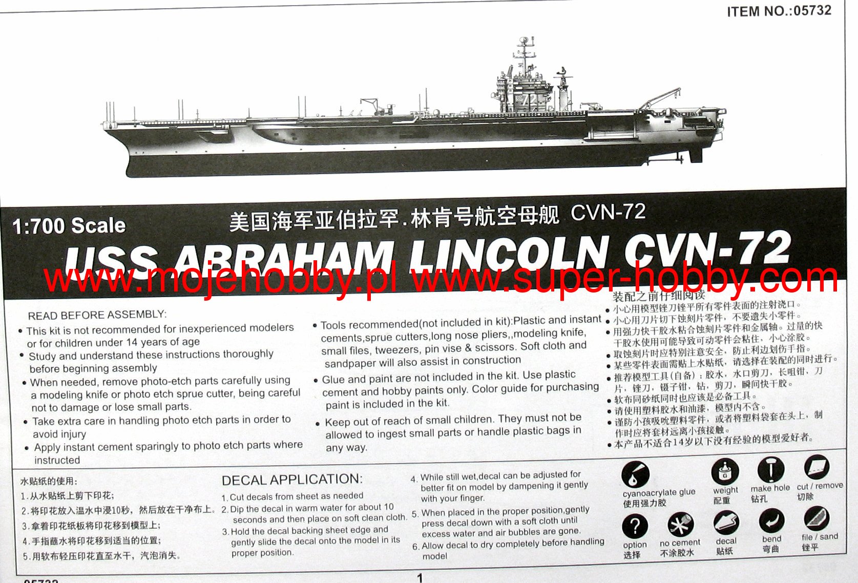 АВИАНОСЕЦ USS ABRAHAM LINCOLN CVN-72 USS ABRAHAM LINCOLN AIRCRAFT CARRIER CVN-72 (1/700) продается в 1 магазинах. Выберите подходящий Вам интернет-магазин и перейдите по ссылке «В магазин».