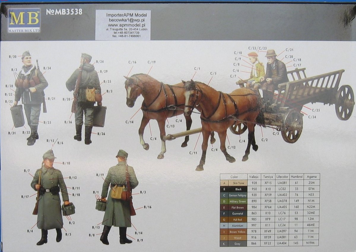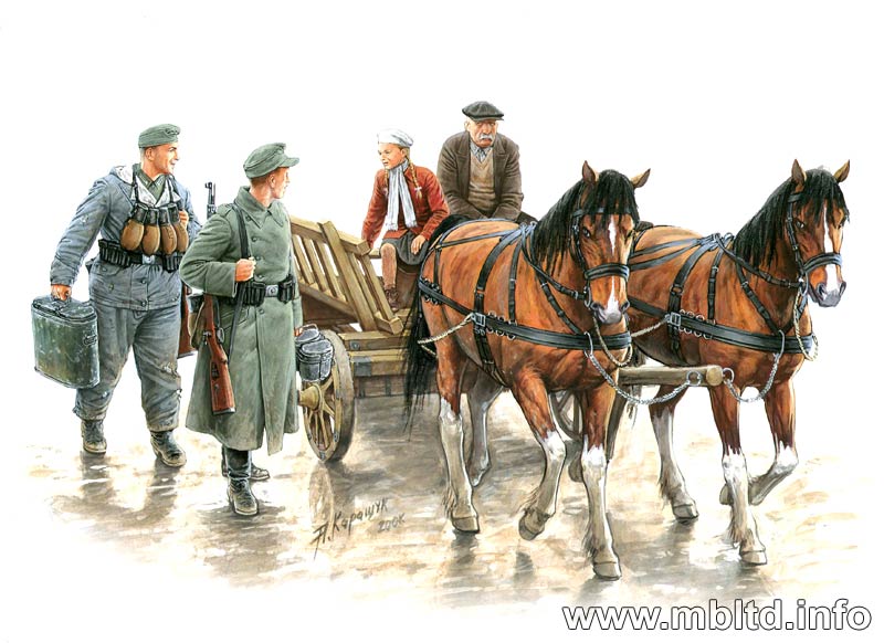 Купить MASTER BOX ПОВОЗКА С ЛОШАДЬМИ, ЕВРОПА 1944 ГОД (4 ФИГУРЫ) (1/35)