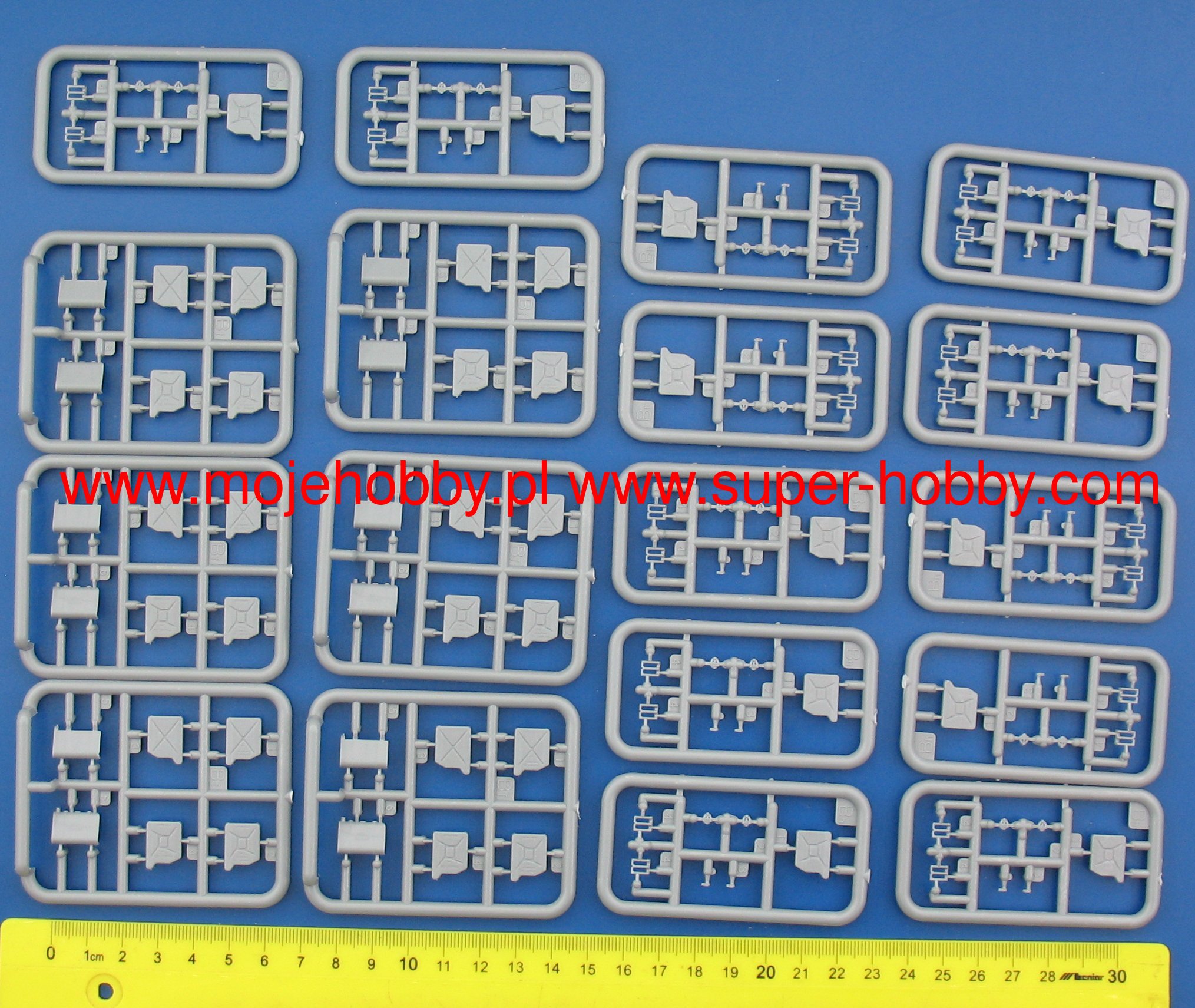 KIT CONTAINS 24 JERRY CANS 2 ASSEMBLING OPTIONS OF JERRY CAN LIDS 4 TYPES OF GERMAN 20L JERRY CANS PHOTO-ETCHED PARTS INCLUDED DECALS SHEET INCLUDED