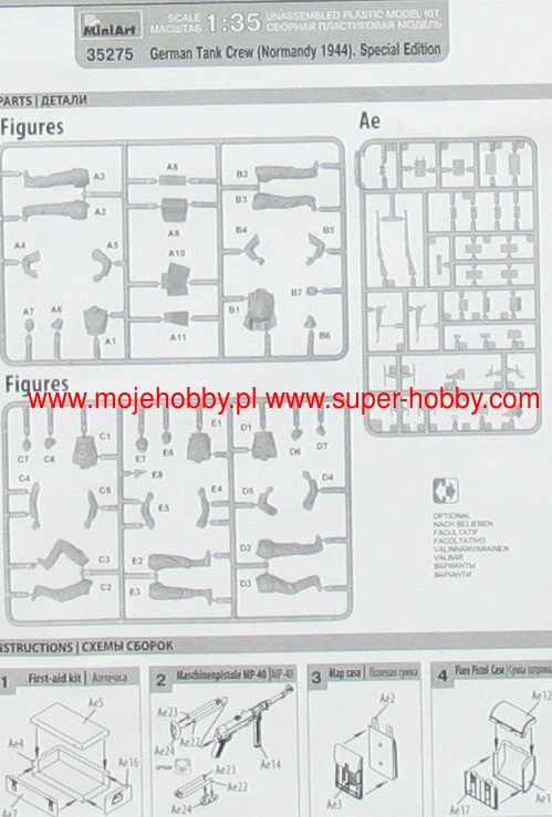 Set includes 5 unassembled and unpainted figures of German Tank Crew (Normandy 1944) and German Infantry Weapons & Equipment
